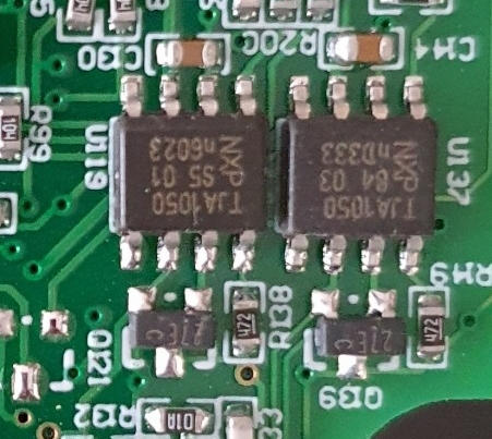 In der Tat, da macht man die Umschaltung nicht mittels Relais (zum Glück) sondern wirklich voll gesteuert vom Chip. Dafür sind zwei CAN-Transceiver (TJA1050) auf dem Board verbaut: