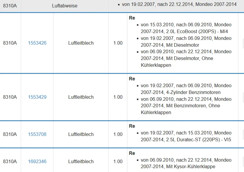 Von dem es natürlich, trotz VIN-Eingabe, mal wieder etliche Variationen gibt die nicht genauer erklärt sind: