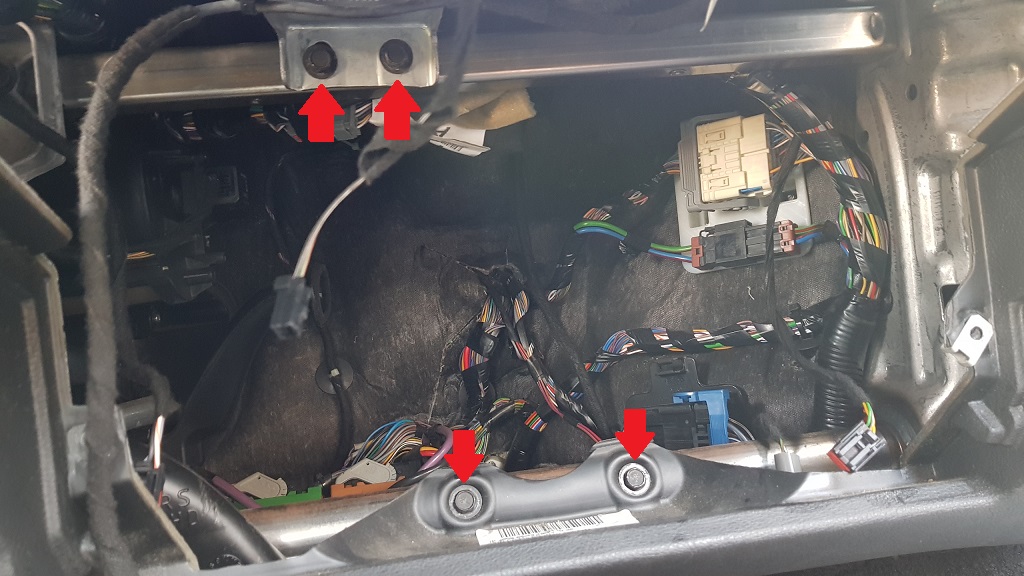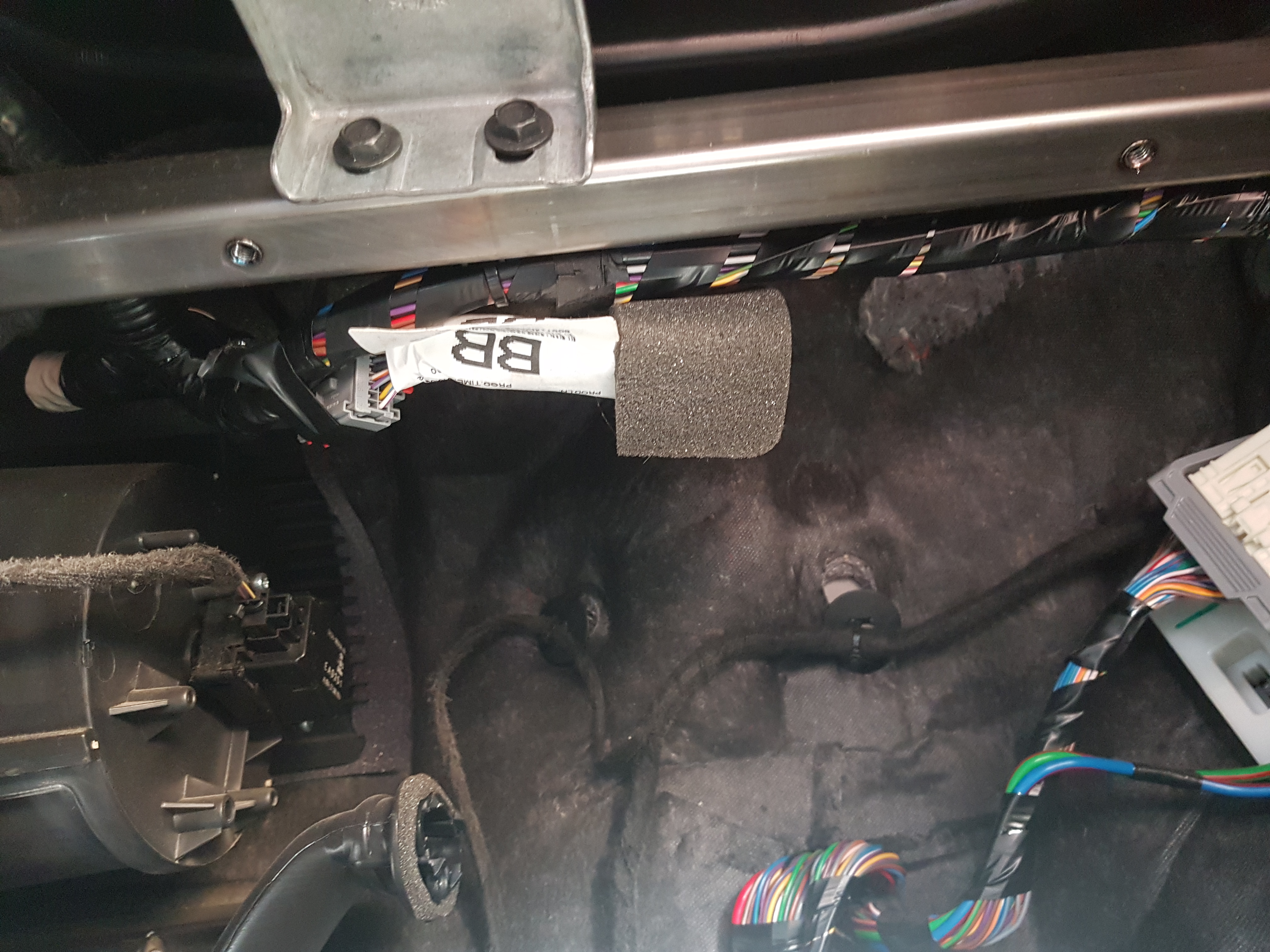 Der Einbauplatz für das Modul befindet sich ziemlich weit oben beim Airbag. Direkt links neben dem Bluetooth-Modul. Da wird sich wahrscheinlich auch der Stecker weiter oben befinden. Also nochmal ran