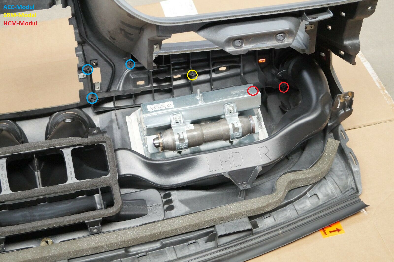 Kannst dich drauf verlassen Go4IT, das Modul sitzt genau zw. Airbag und Luftdüse, da wo im Bild die Befestigungspunkte markiert sind.