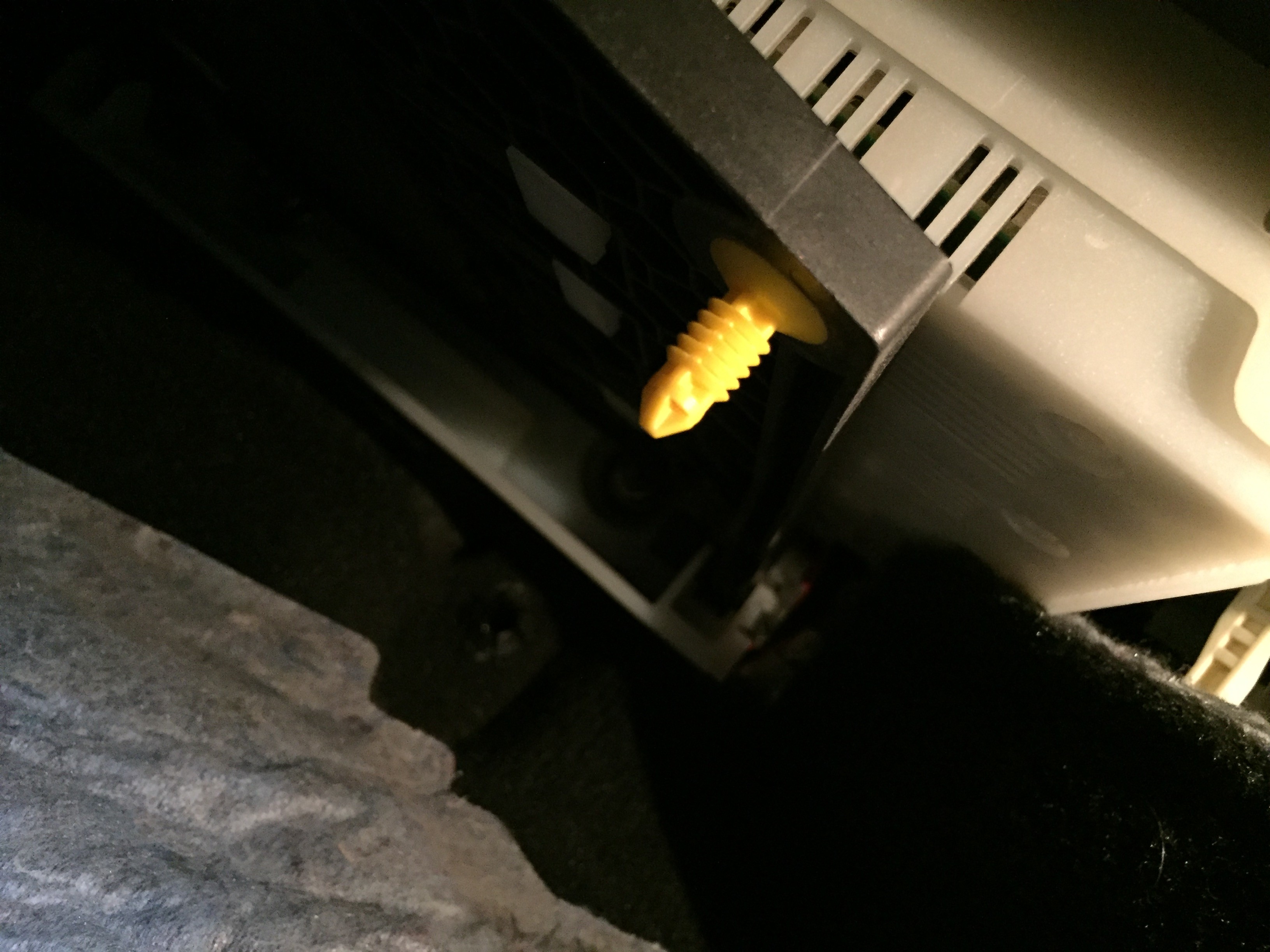 Ich bin am verzweifeln und mein Händler tappt auch im Dunkeln. Die Abdeckung (siehe Foto) im Fußraum Beifahrerseite kommt runter. Sie wird über anderem an zwei gelben Schrauben befestigt und dann mit so schwarzen Gegenstücken die auf die gelbe Schraube kommen war gedrückt. Diese beiden schwarzen Teile habe ich verloren...