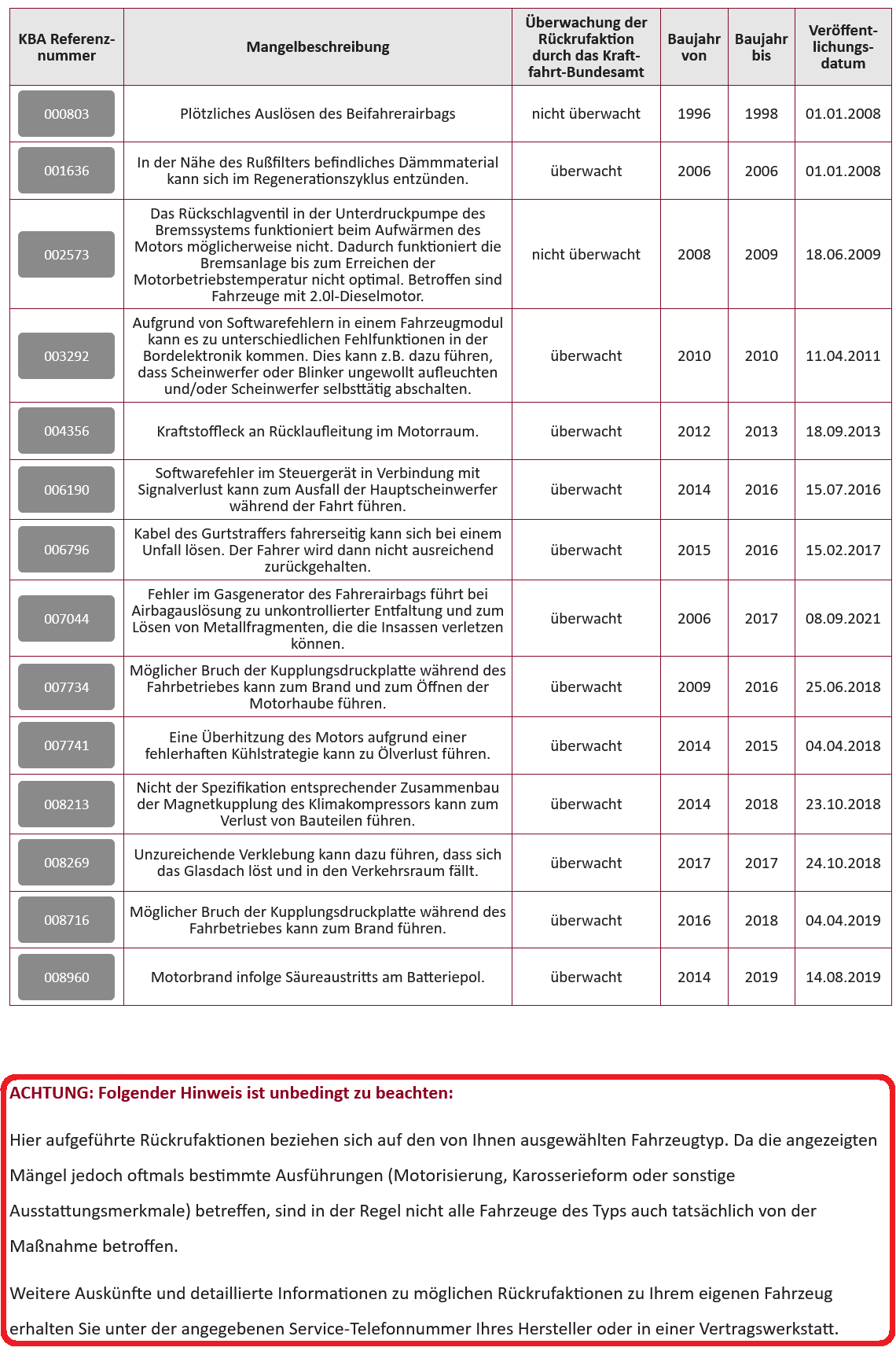 Ich frage mich, wie einerseits so eine große Zeitspanne betroffen sein kann und andererseits ermittelt werden kann, welches Fahrzeug betroffen ist oder nicht.
