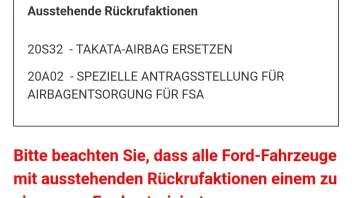 *Habe eben mal meine VIN auf Etis und zur Kontrolle auch bei Ford-Service eingeben und bei beiden kommt die Meldung über anstehenden Airbag-Tausch.