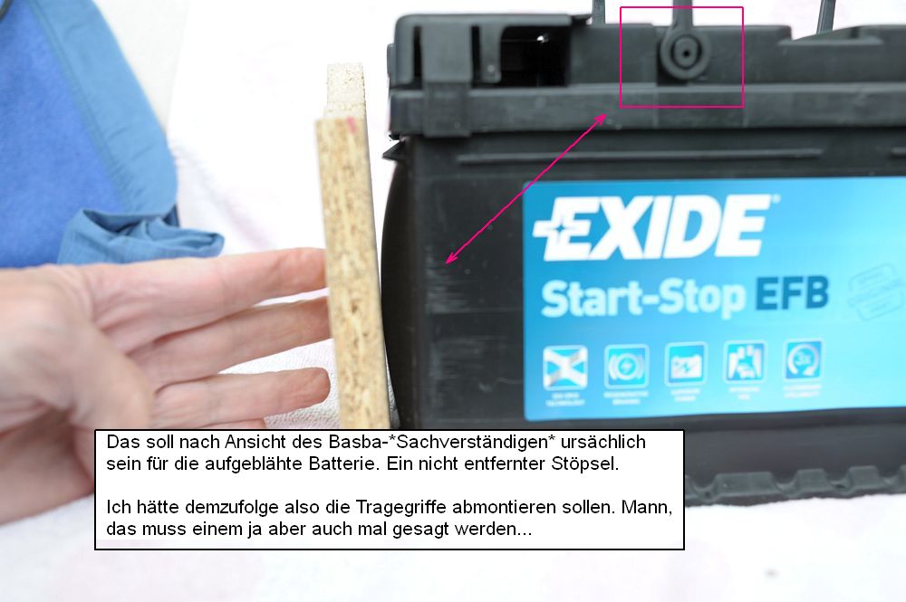 bevor die ganz klugen kommen: nachdem die batterie hier angekommen war, ist sie umgehend ausgepackt worden. der stopfen, dass das ding entgasen kann, wurde natürlich umgehend entfernt. die batterie wurde nicht bewegt, stand durchgängig neben mir, also warm und trocken...