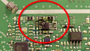 2) Steuergerät ausgebaut, aufgeschraubt und Platine angeschaut => offensichtlich defekte Bauteile gefunden (angekokelt)