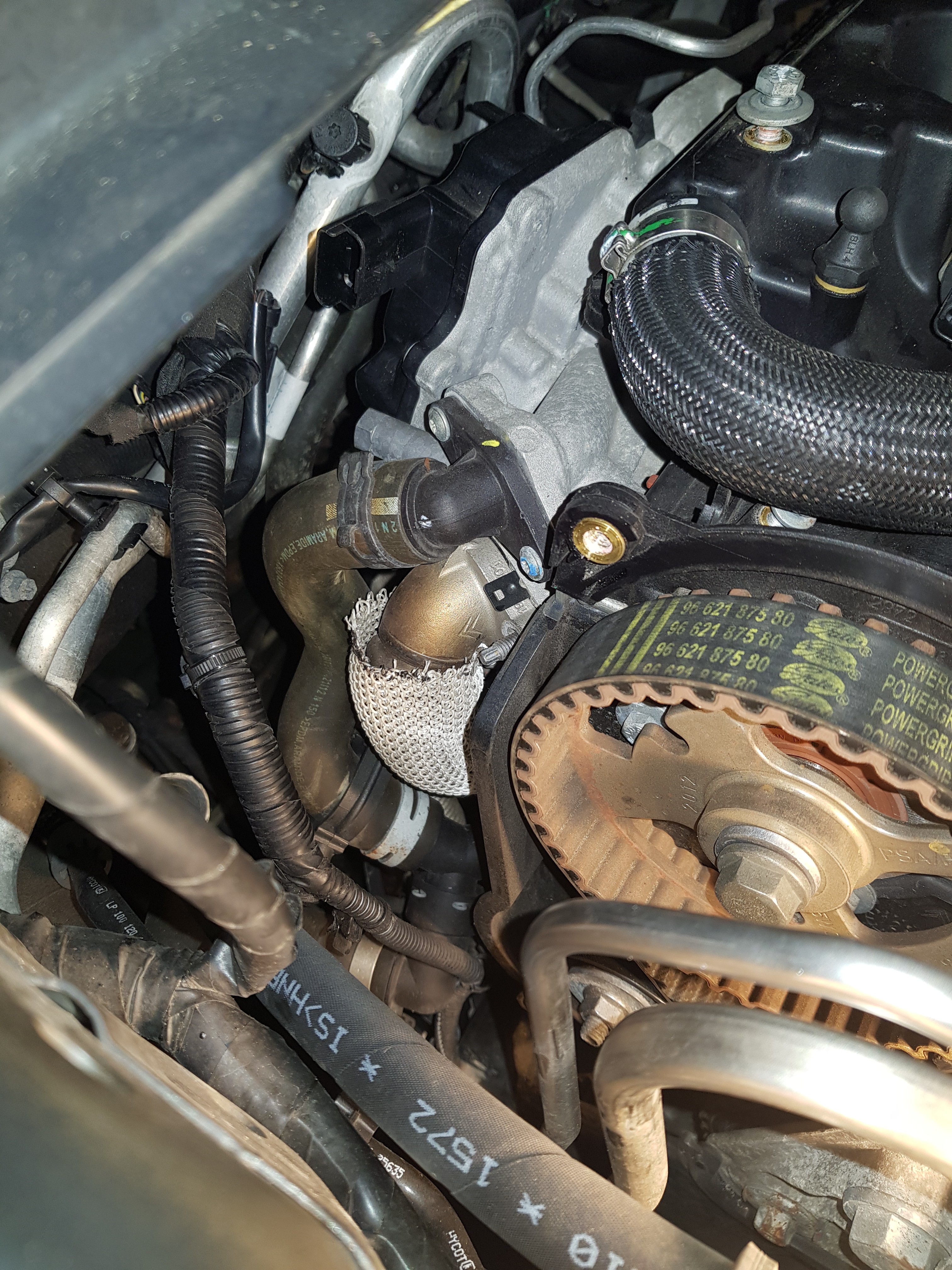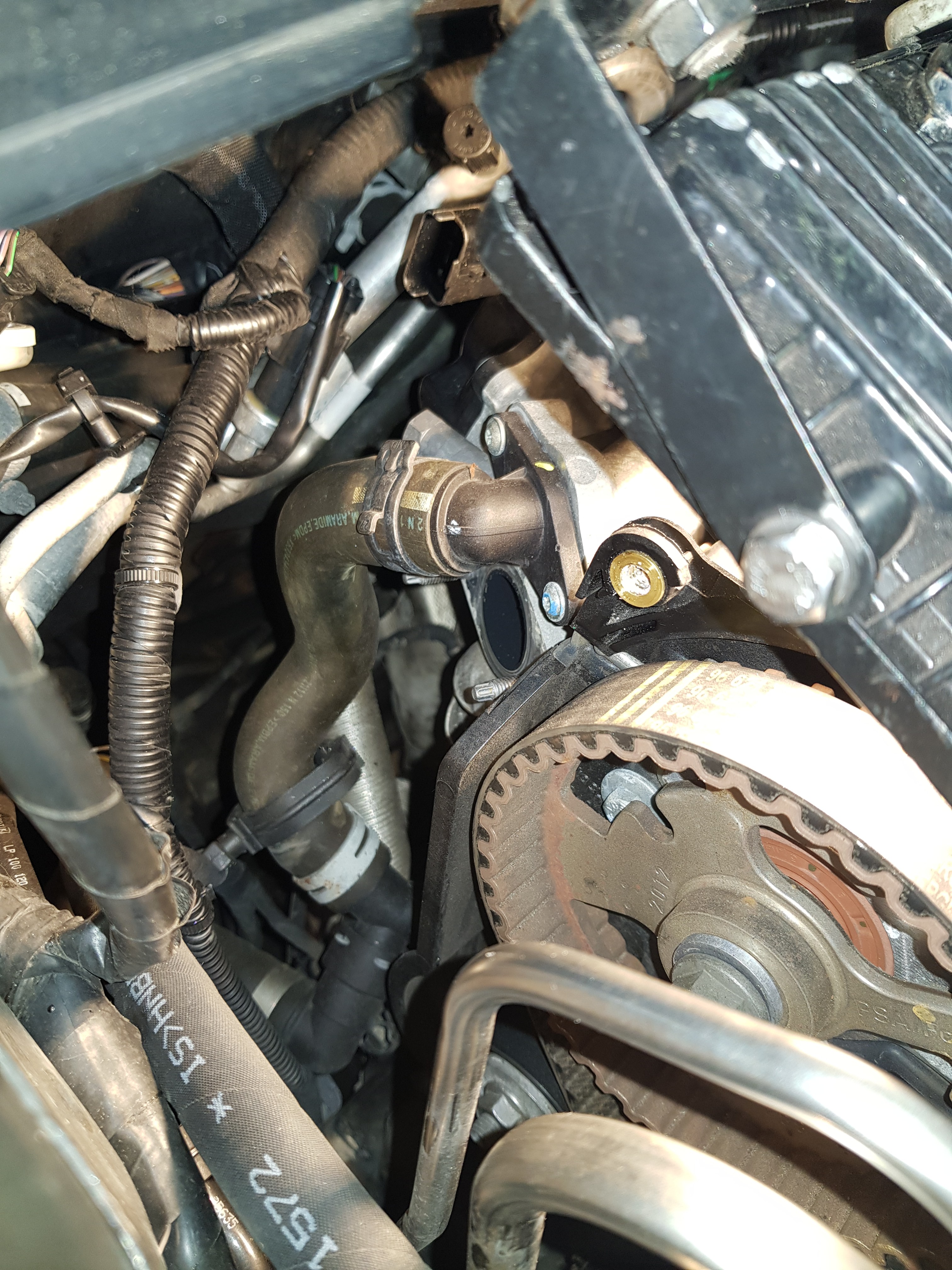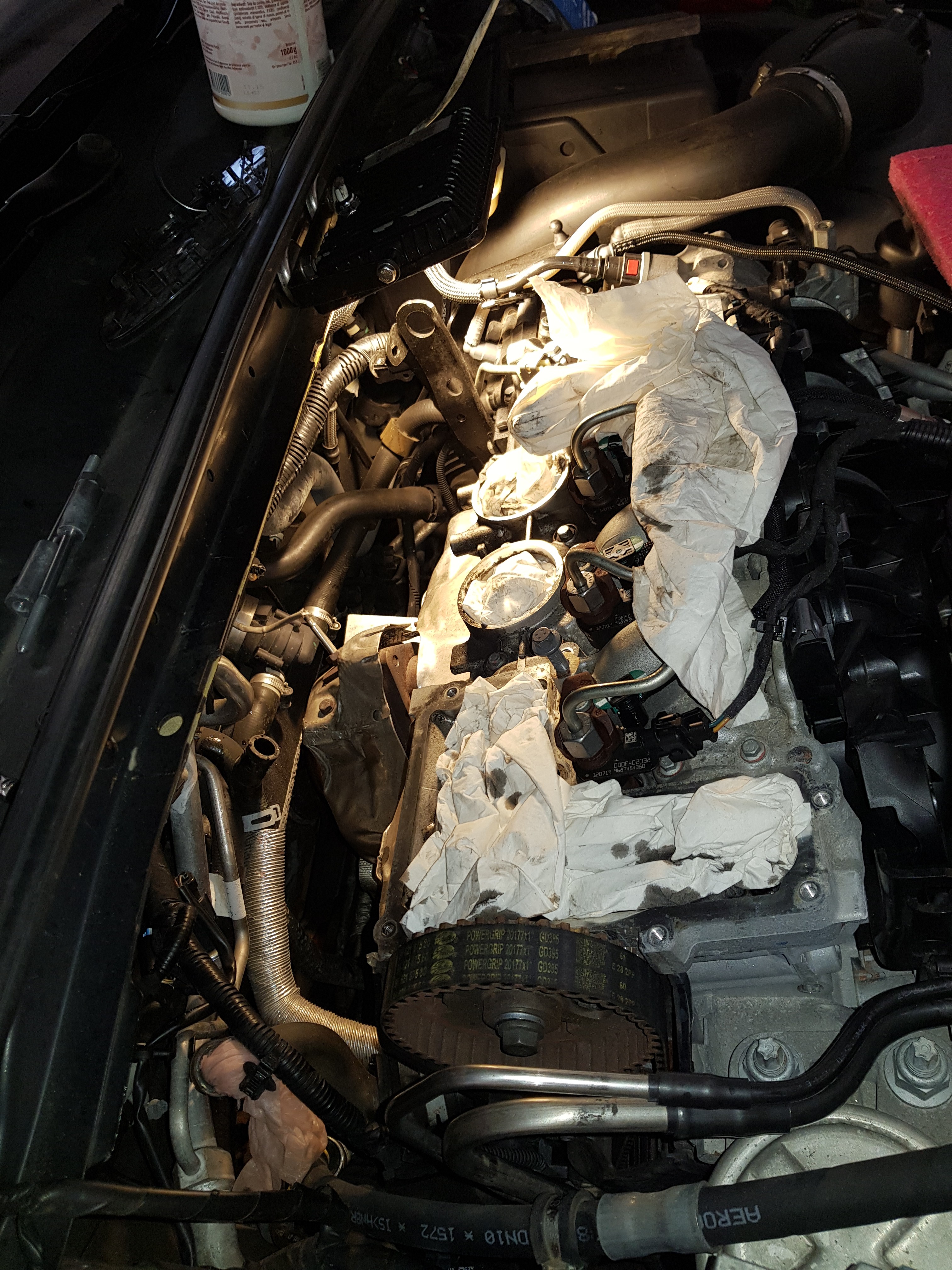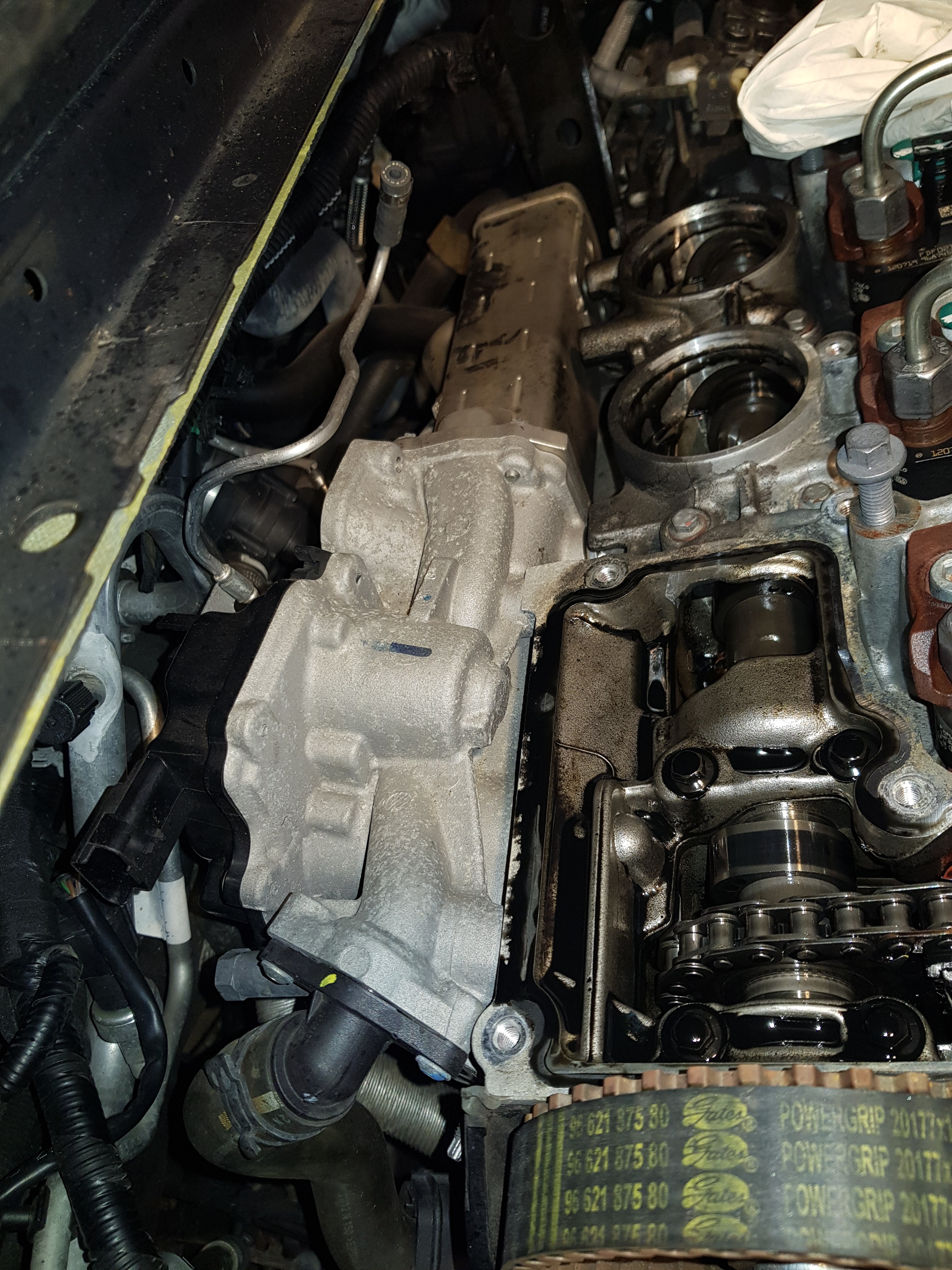 Als erstes die Zahnriemenabdeckung entfernen, dann hat man Sicht auf die Abgaszuführung zum AGR Ventil. Dann die Kühlwasserleitung und die Zuführung abmontieren. Ist nur ein kleiner Rohrbogen mit 4x M6er Muttern. Als weiteres muss oben zwingend das Railrohr ausgebaut werden und die Railleitungen zu den Injektoren entfernt oder zur Seite gedreht werden. Nun kann man den Plastikventildeckel ausbauen. Dann hat man Blick auf die Auslassnockenwelle und die Steuerkette. Jetzt ist soviel Platz das man Problemfrei die AGR Leitung zum Ansaugkrümmer komplett ausbauen kann und die zweite Kühlwasserleitung sowie die Unterdruckleitung ebenso.