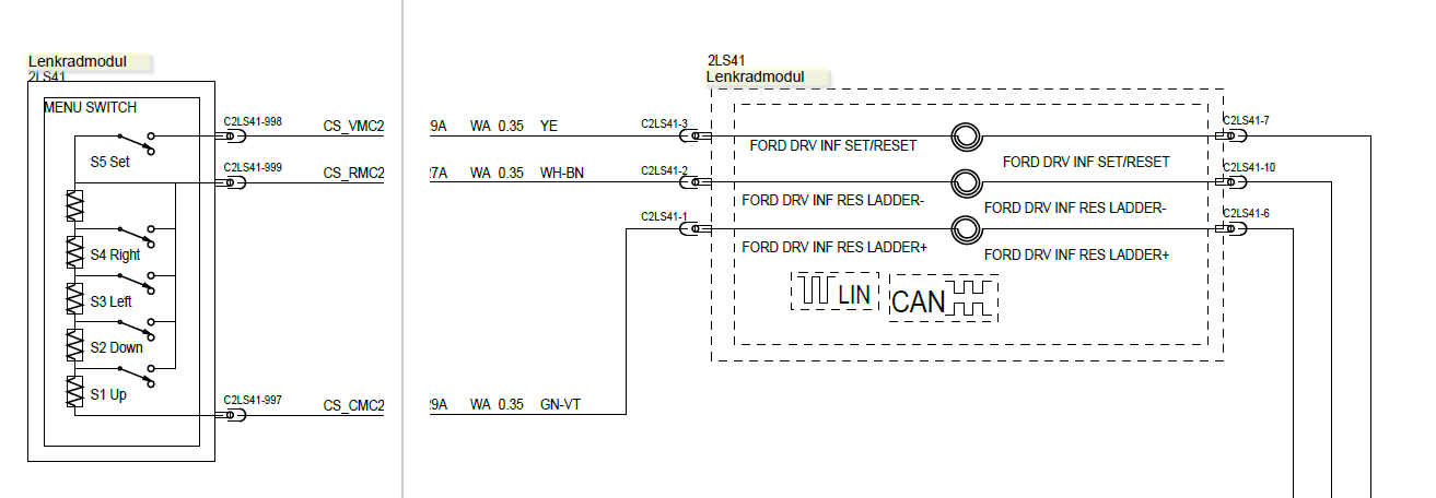 Bevor Du gleich alles zerlegst würde ich Dir raten erstmal zu messen. Denn die Anschlüsse C2LS41 erreicht man ganz gut auf der linken Seite des Lenkstocks. Dazu nur die Verkleidung runter nehmen und den Stecker abziehen: