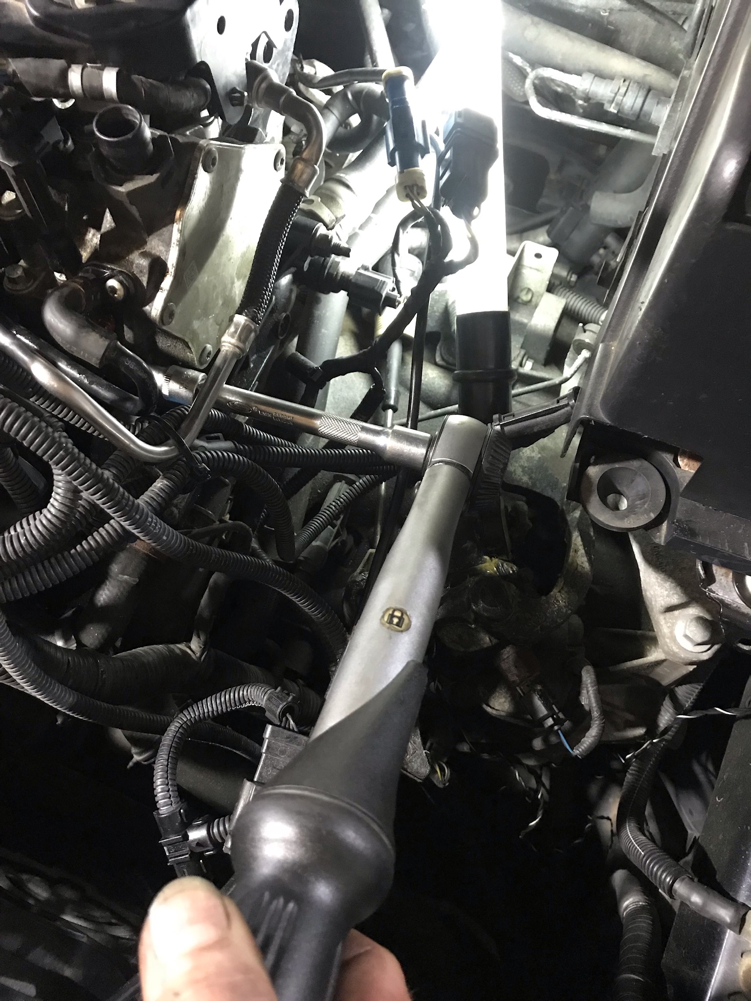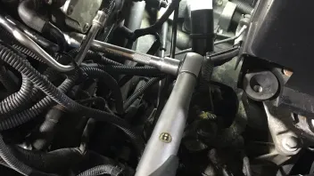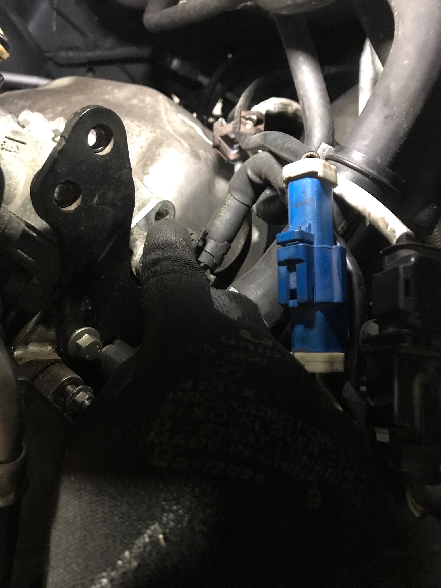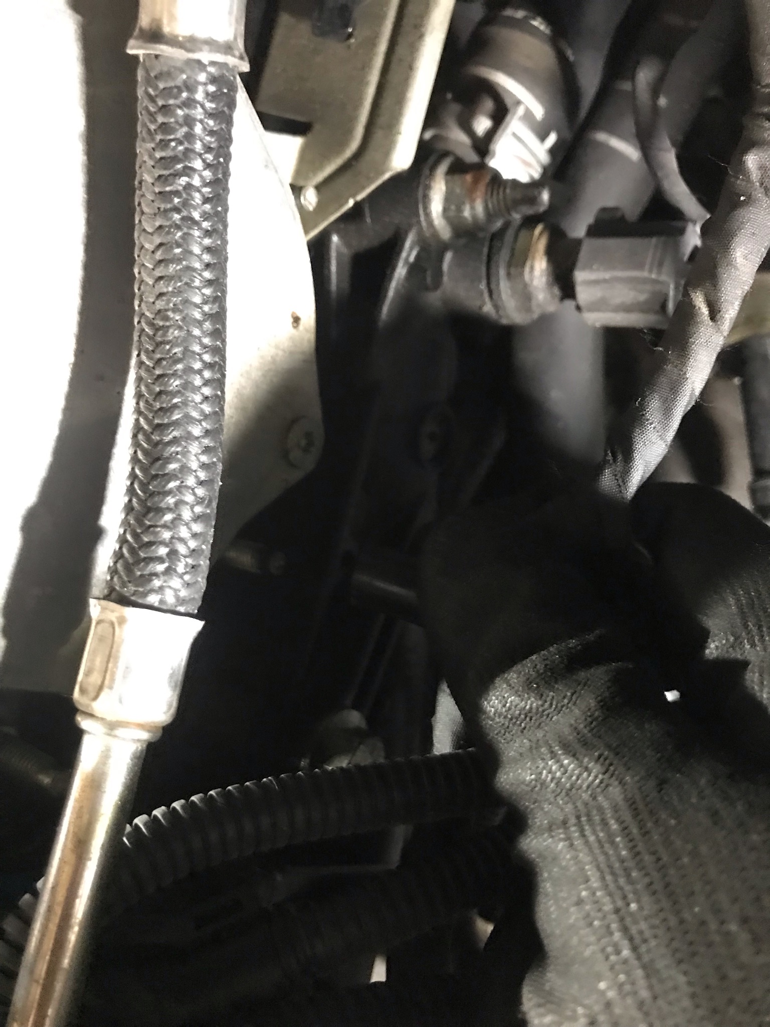 - Stecker von den Kat Sonden abmachen, Halteblech mit 10er Nuß abschrauben