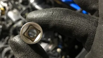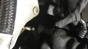 - jetzt die 3 Muttern, bei mir sind die Gewindebolzen gleich ganz mit rausgekommen, mit einer 8 er Langnuß abschrauben