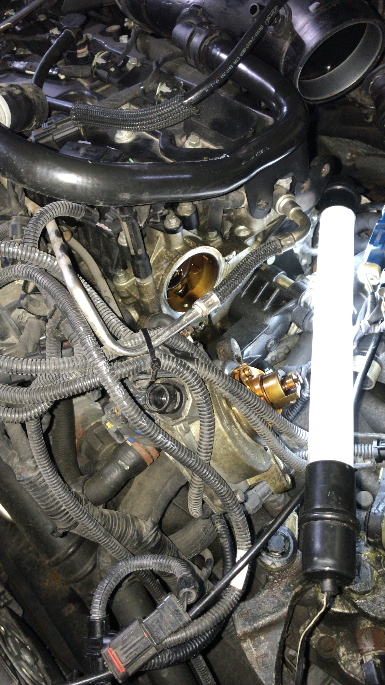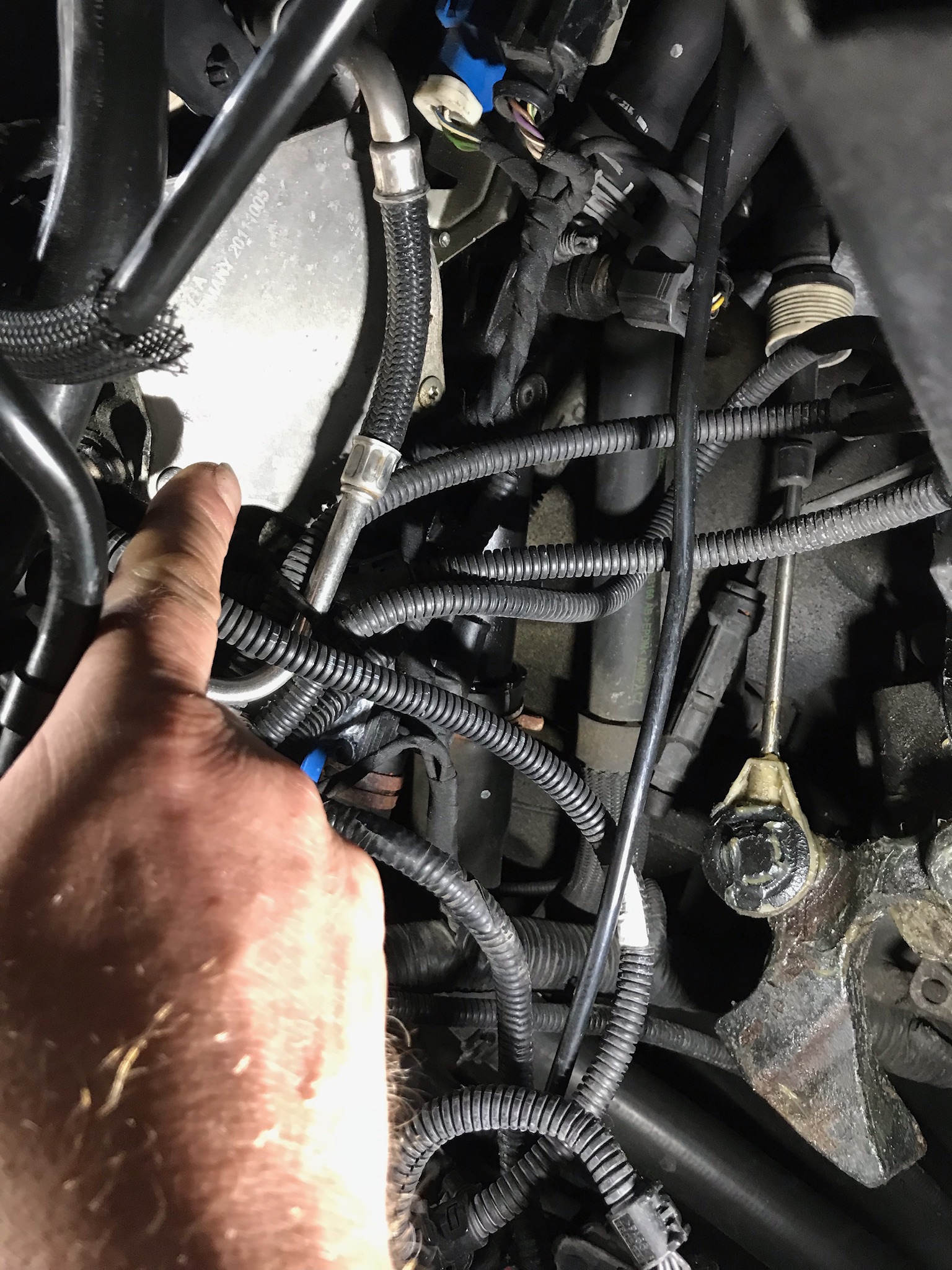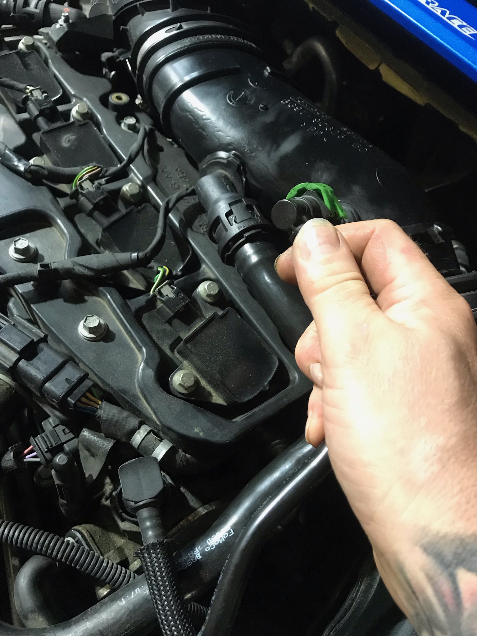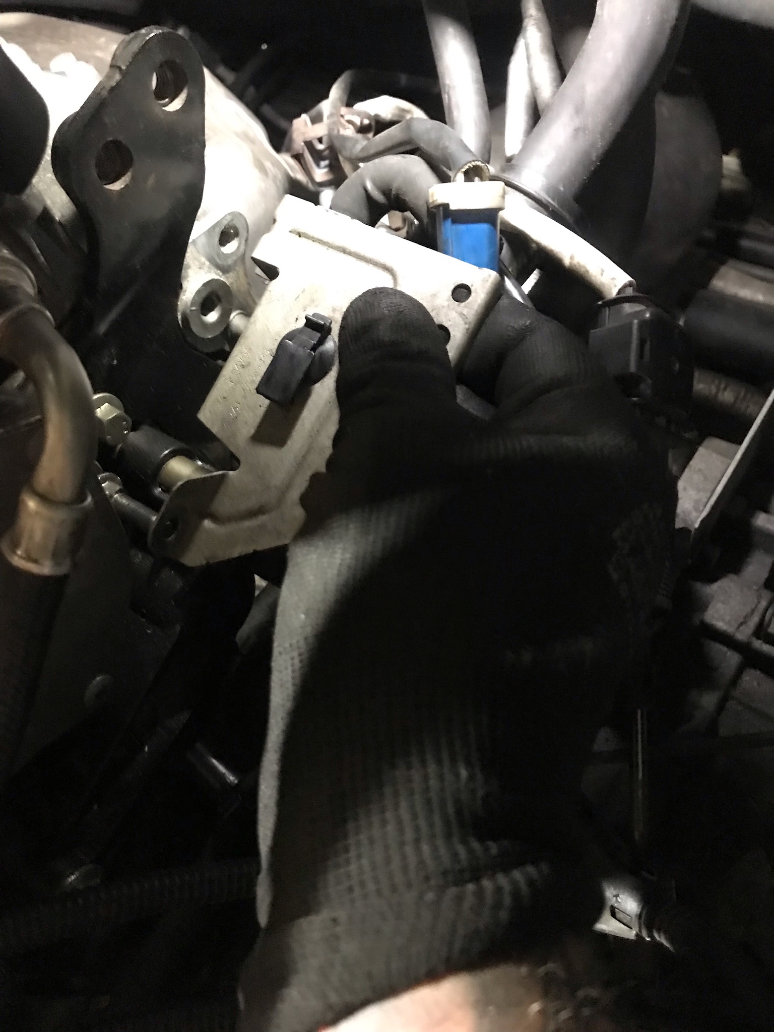 - Luftfilterkasten am besten raus, Deckel ab und Schlauch trennen, Kabel vom Sensor ab und das Unterteil aus den Gummipuffern rausheben