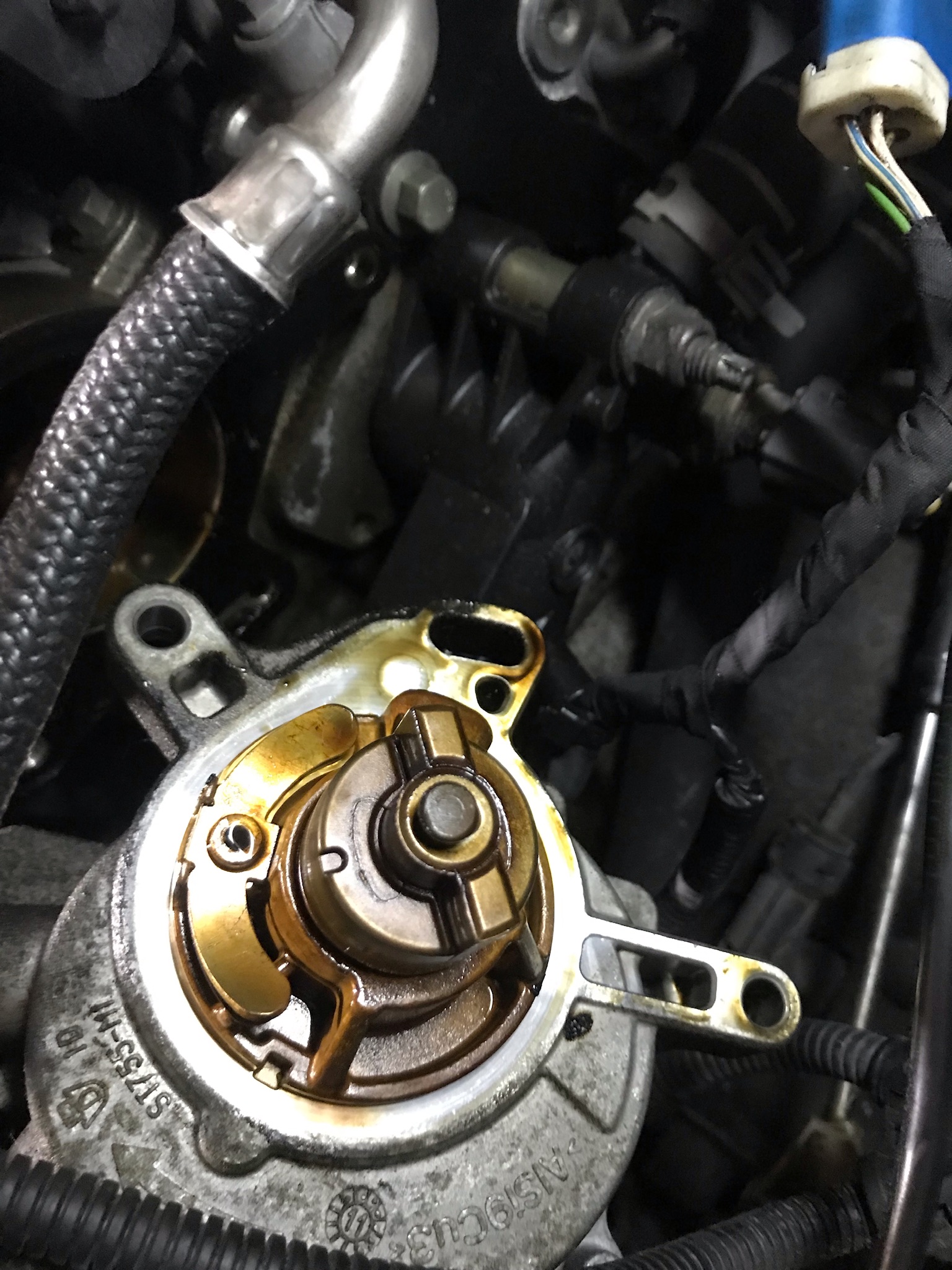 - Dichtung auflegen und Pumpe aufsetzen, achtet darauf das der Zapfen der Pumpe in der richtigen Stellung ist für die Nockenwelle