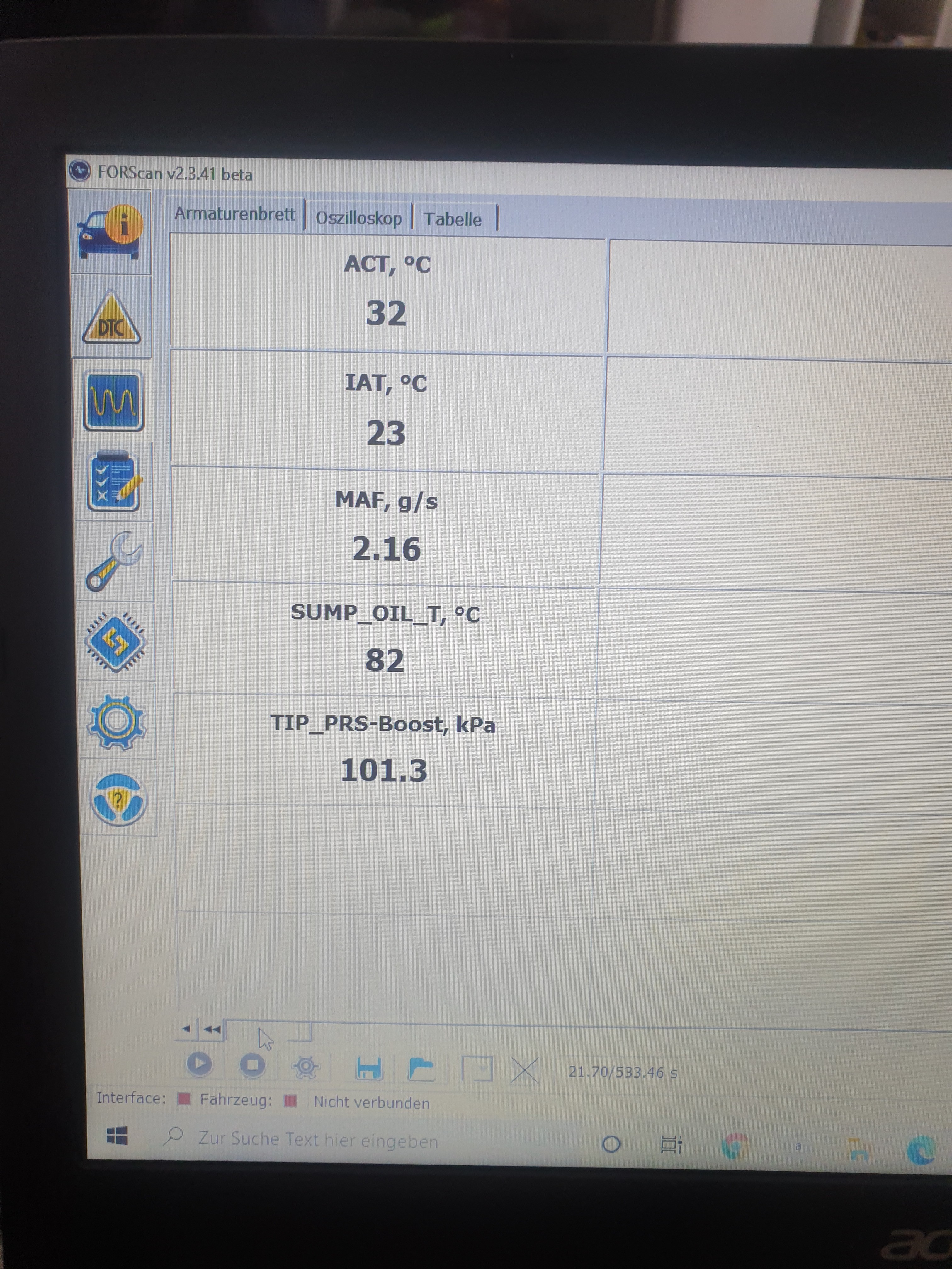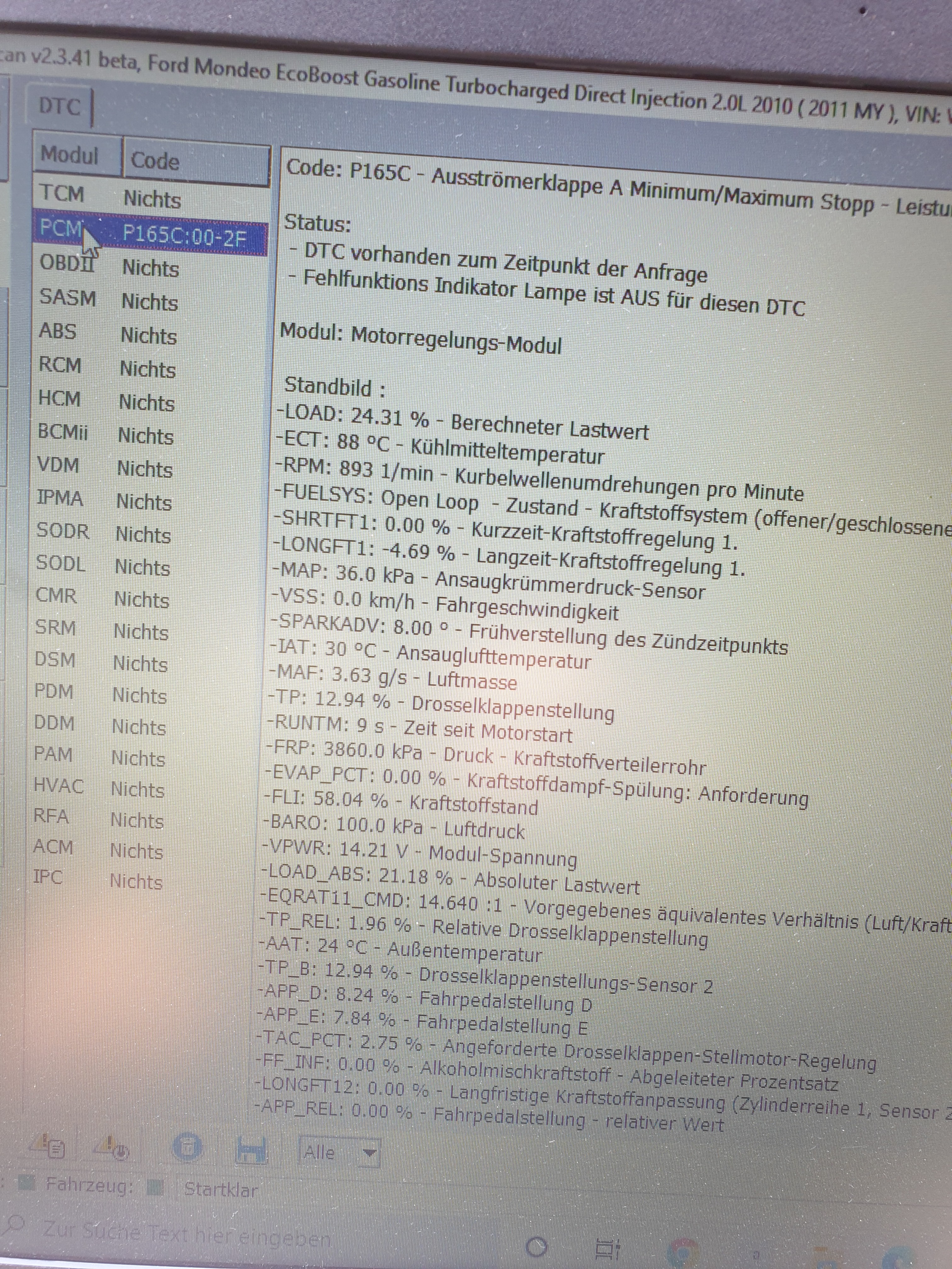 Im ForScan konnte ich nämlich bei der Livemessung die Temperatur sehen, Betrug 89Grad