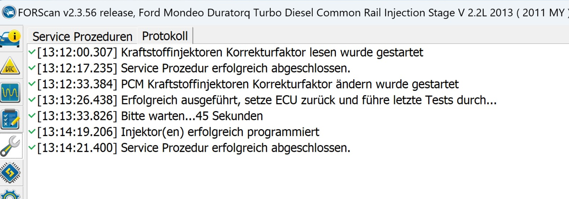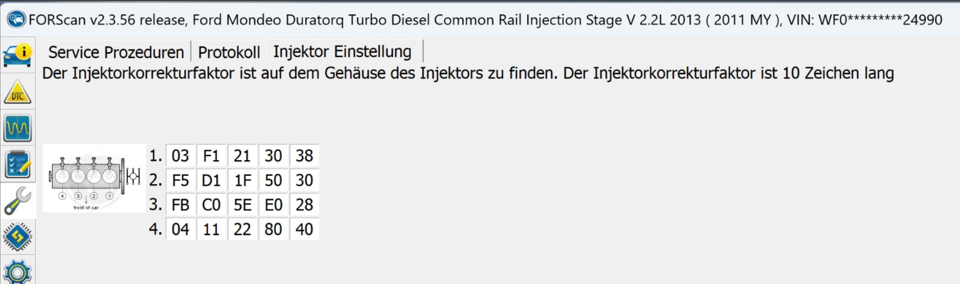 Da ich ja wusste, dass die anderen Injektoren nicht mehr ewig machen, hab ich sie nun am WE ausgetauscht:Prozedur im ForSCAN als Dokumentation - Go4IT , kannst gerne in deine Denkdose übernehmen wenn Du Material möchtest.