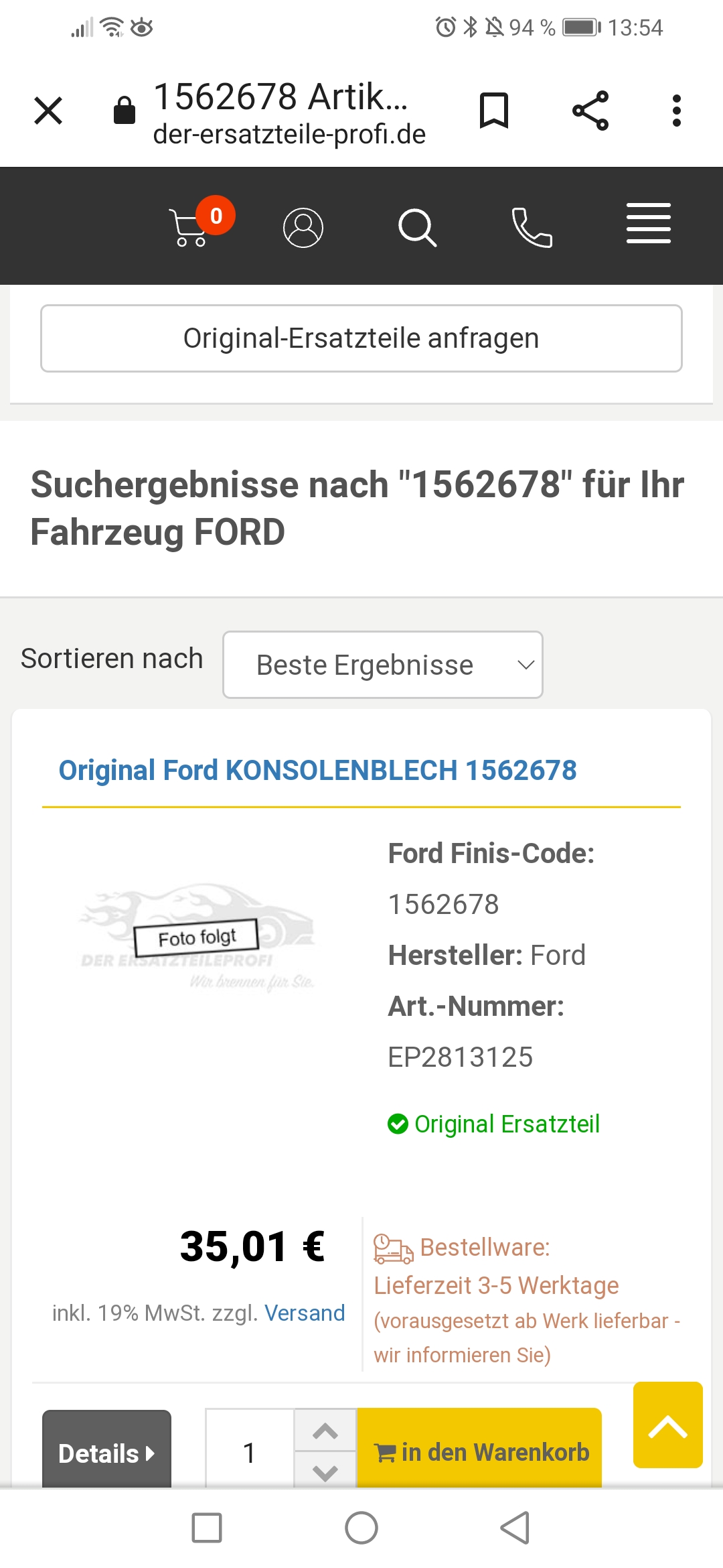 Bei Innenraum-Teilen hat der Händler direkt schon abgewunken.