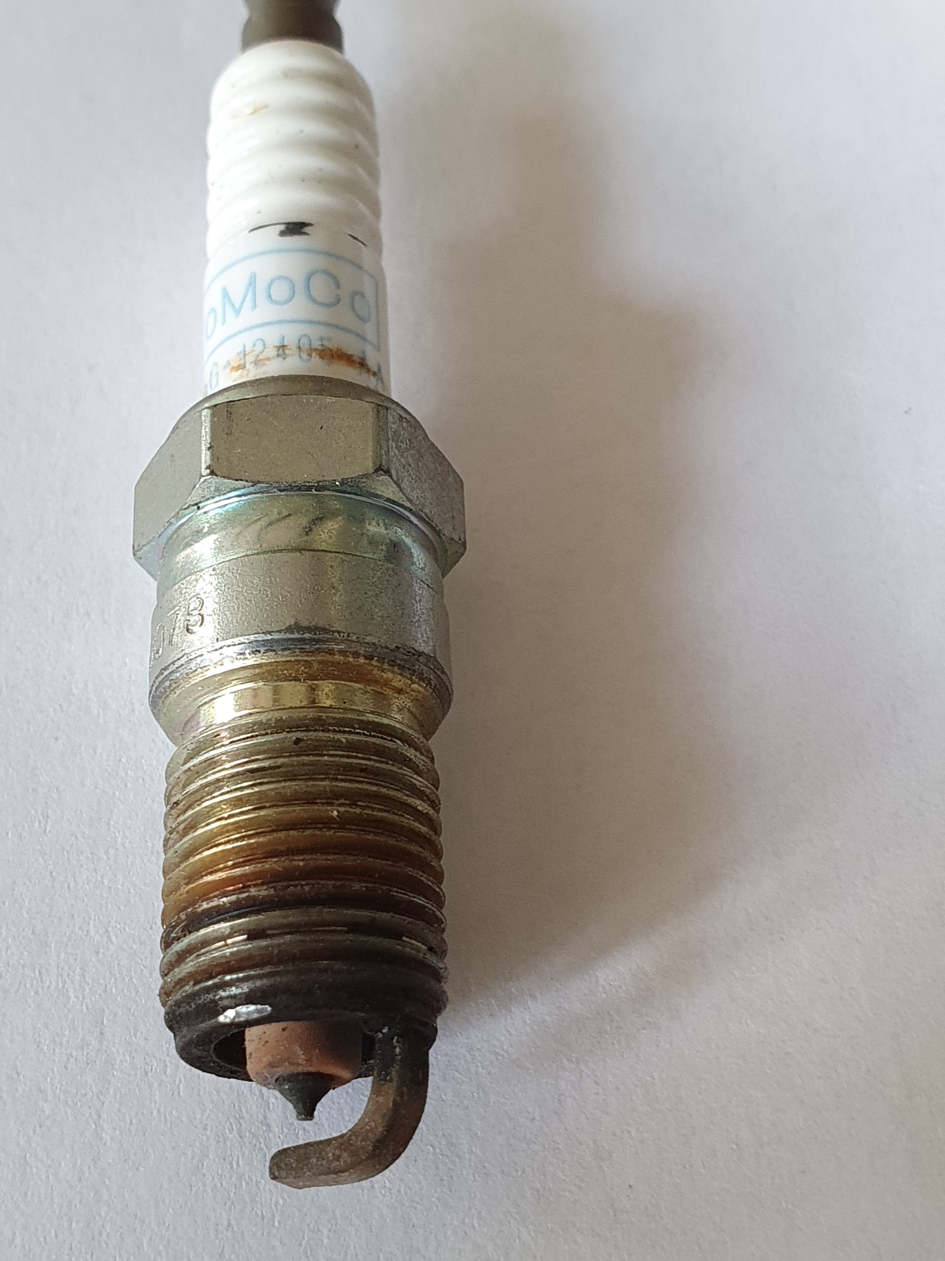 Zündkerze Zylinder 1 ausgebaut. Extrem nass, Öl und graue schmiere.