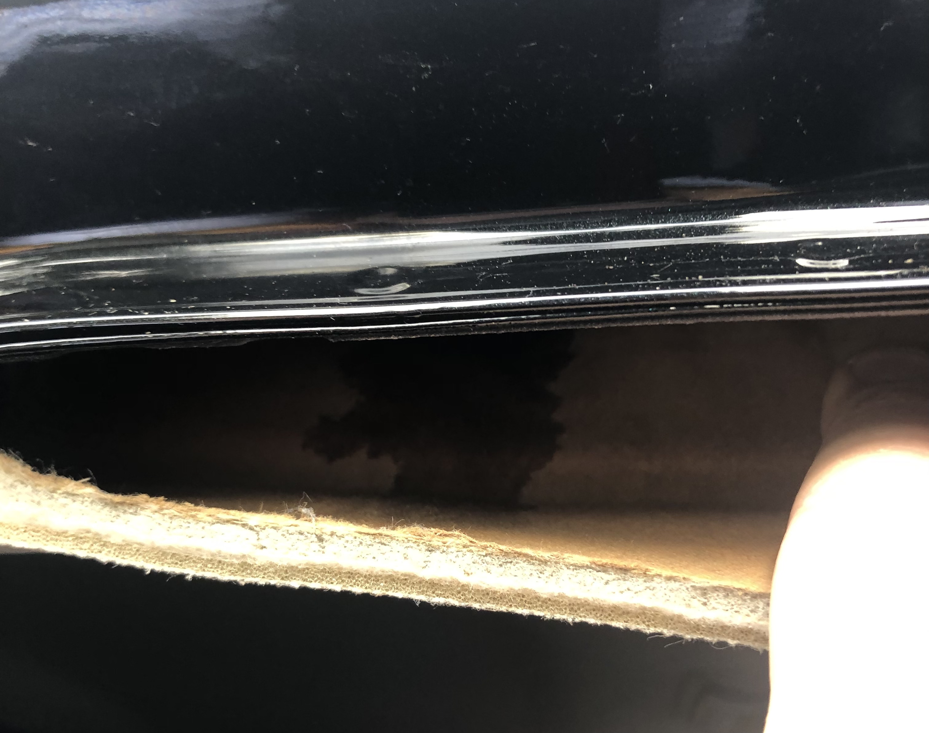 Am Anfang dachte ich, es kommt vom hinteren Ablauf des Schiebedachs im Kofferraum. Also habe Wasser in den Ablauf des Schiebedachs gegossen. Es blieb im Kofferraum trocken und unterm Auto lief Wasser ab. Dann hab ich aber entdeckt, dass das Wasser unterm Dachhimmel und von dort hinter der Verkleidung und Türdichtung nach unten wanderte und sich unter der Sitzbank sammelte.