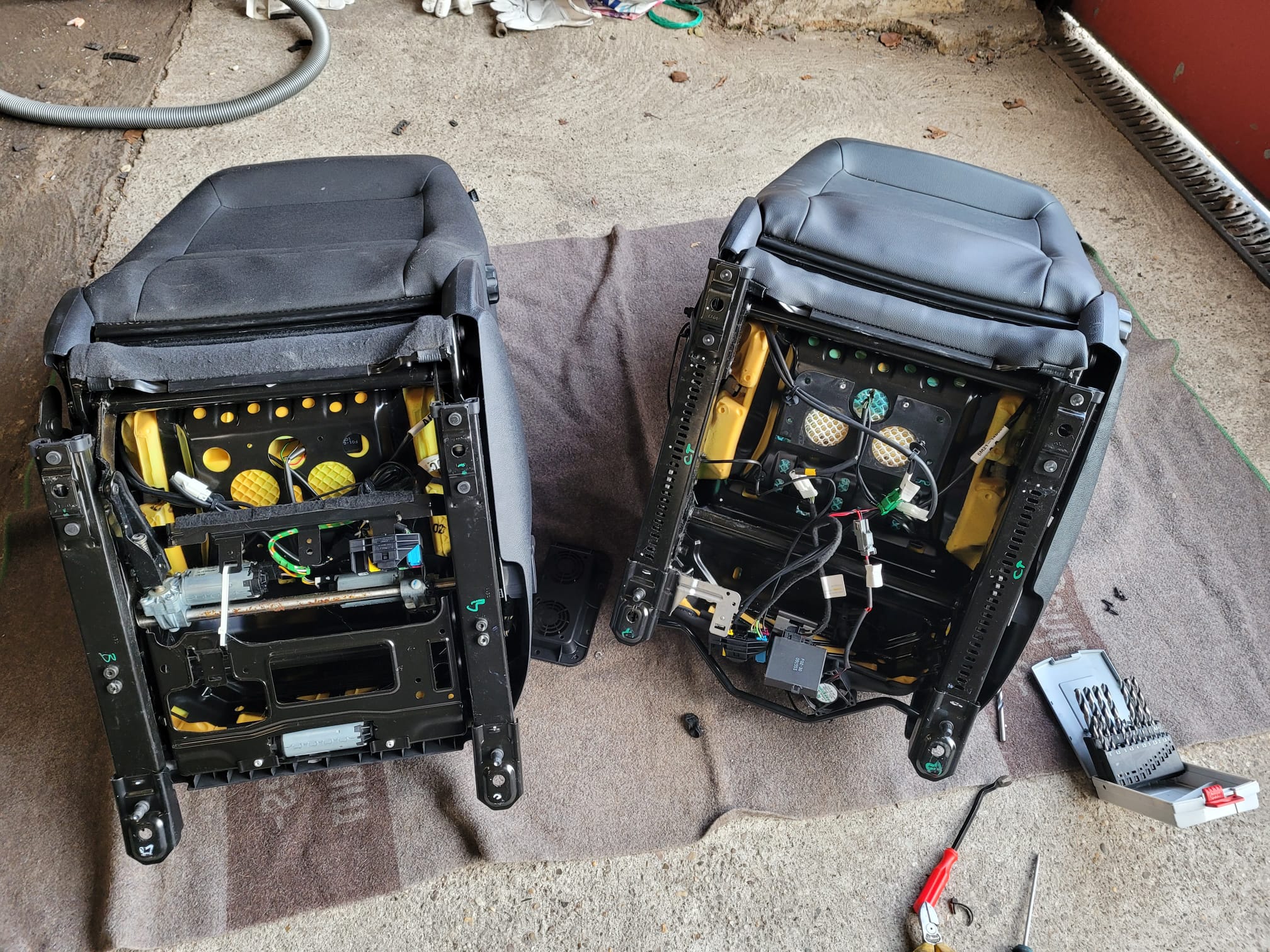 Was direkt ins Auge fällt, MEINE Sitze haben sogar eine Pinbelegung mehr im Stecker. Dachte eher an weniger oder gleich viel. Natürlich haben meine die Ansteuerung der Verstellmotoren, dafür dachte ich aber, es fehlt die Ansteuerung der Ventilatoren. Pustekuchen, sowas gibts offenbar nicht separat.