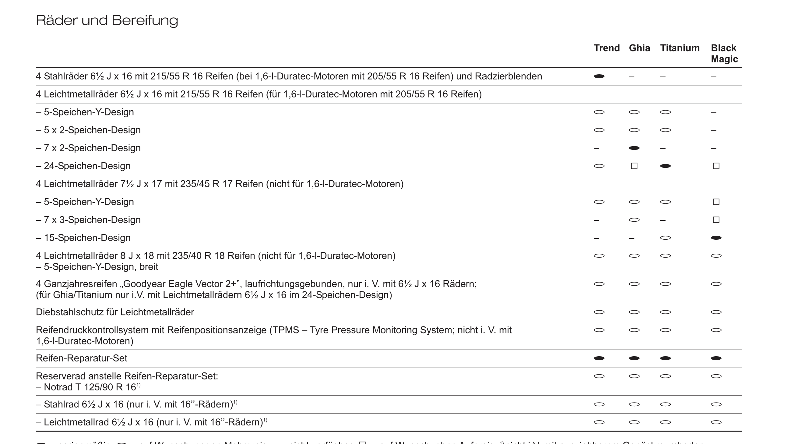 Warum kann ich auf meinem Mondeo 1,6 l mit 110 ps keine 17 Zoll Y Alu-Felgen von Ford fahren?