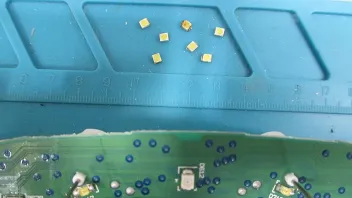 7 Stück waren defekt, alle von der Hintergrundbeleuchtung. Diese habe ich gegen originale ausgetauscht (gut zu erkennen, meine sind die ohne Lötkleckste und nicht verbrannt