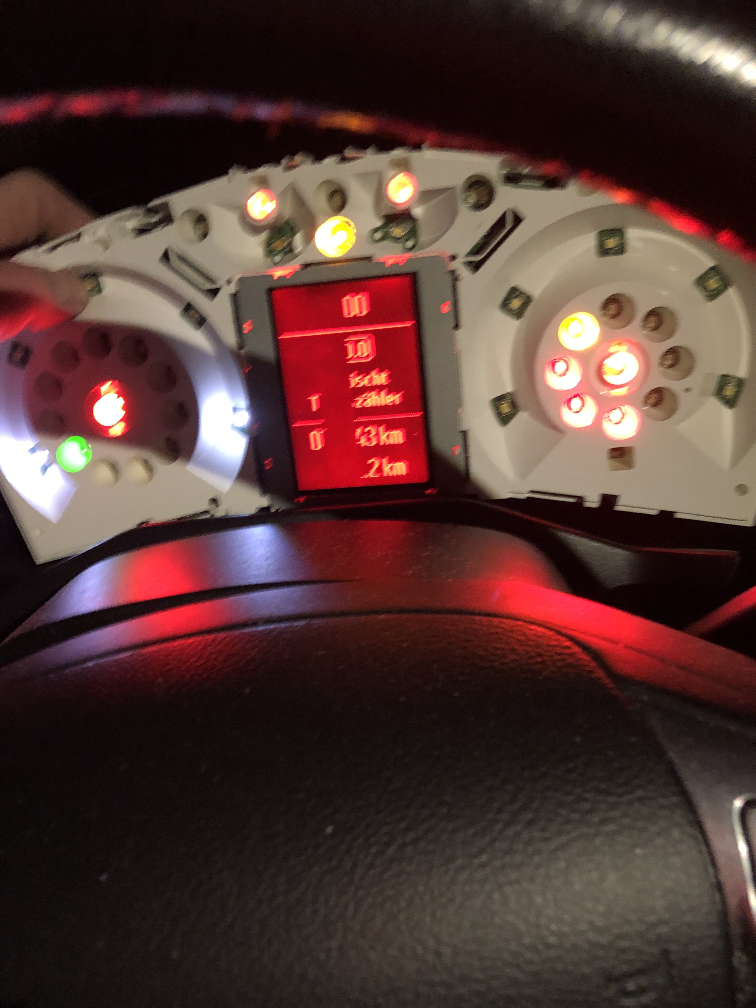 Nach 4 Stunden ist er mit dem Teil zurück und hat gesagt das er alles auseinander gebaut hat und es viele kalte Lötstellen gab ich ok bin dann zum Auto siehe Bild ? rechte Hintergrund Beleuchtung hatte vor seinen Eingriffen funktioniert auch war der Strich nicht in dem roten Display drin kann man das noch retten oder brauche ich ein neues Display kosten Punkt 100 Euro hat er vielleicht einen Kurzschluss auf der Platine verursacht oder ist wo auf denn Smd kein richtiger Kontakt vorhanden wenn ich auf die Smd drücke leuchten sie kurz wenn ich loslasse gehen sie wieder aus ! ihr könnt euch vielleicht vorstellen wie es mir geht aus einem 40 Cent Reparatur eine vielleicht Totalschaden gemacht ? Bild 2 war alles noch gut