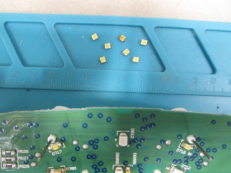 7 Stück waren defekt, alle von der Hintergrundbeleuchtung. Diese habe ich gegen originale ausgetauscht (gut zu erkennen, meine sind die ohne Lötkleckste und nicht verbrannt