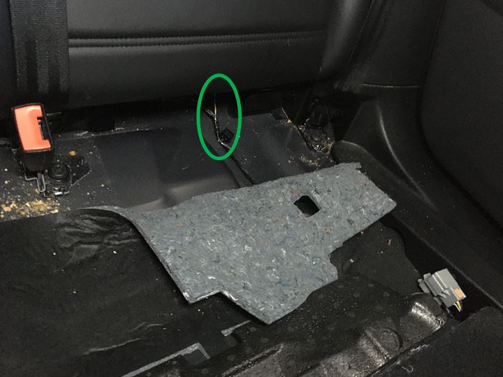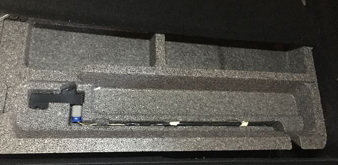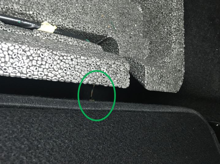 Die KV Antenna, die in dem linken Styropor-Teil liegt und von der ein Kabel nach vorne unter den Rücksitz führt hat er rausgerissen und hinterher behauptet er war es nicht.
