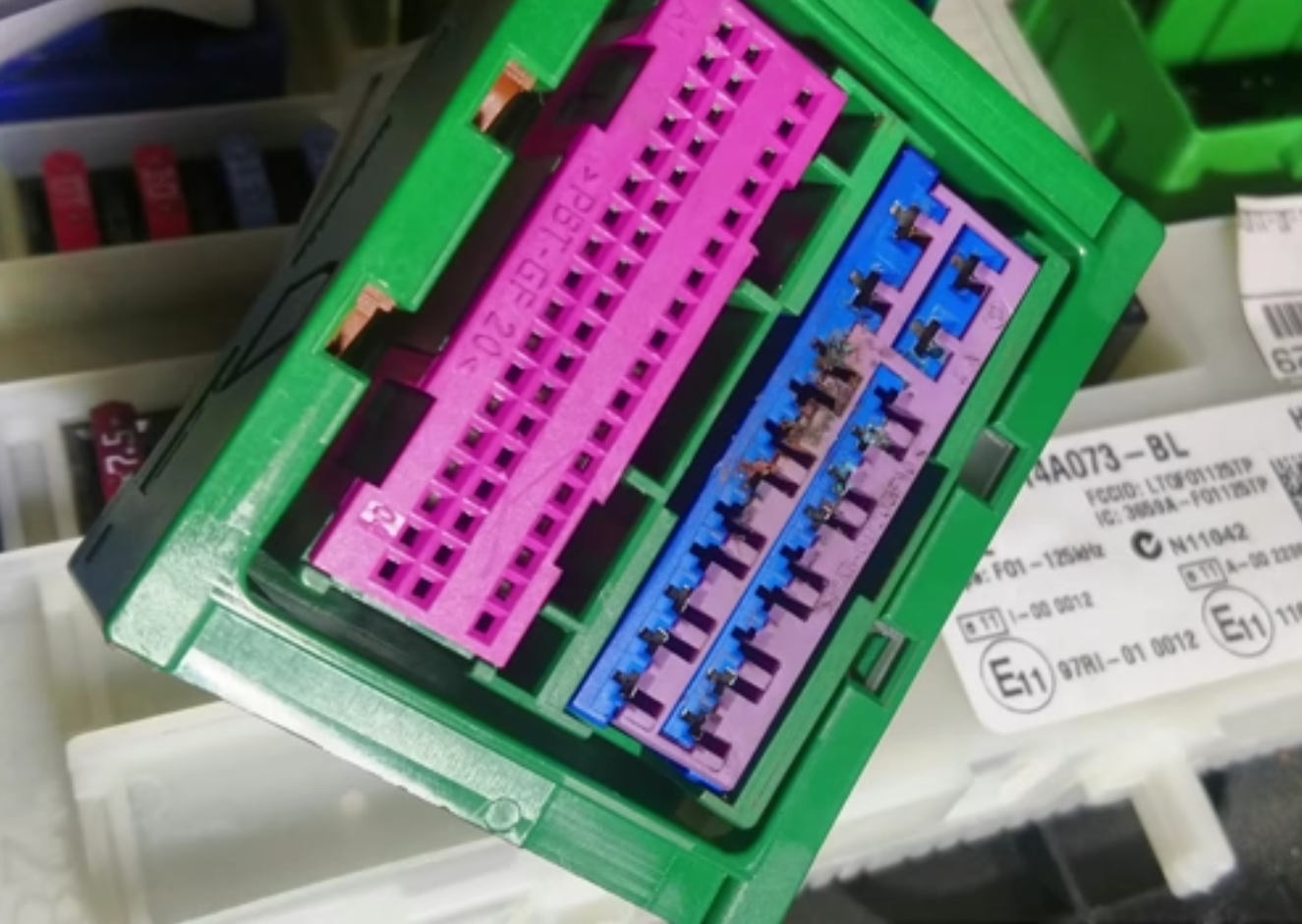 Wenn der Stecker in Ordnung scheint (diese Lila Schutzkappe kannst Du auch vorsichtig nach vorn raus hebeln, dann siehst Du die Kontakte besser (Lampe)) dann bau das BCM mal ganz aus und öffne den Deckel (ist nur geclipst) und schau wie es innen aussieht (Fotos machen).