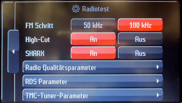 Im "Dealer-Mode" (NAV + HOME) gibt es auch was fürs Radio (Radiotest):