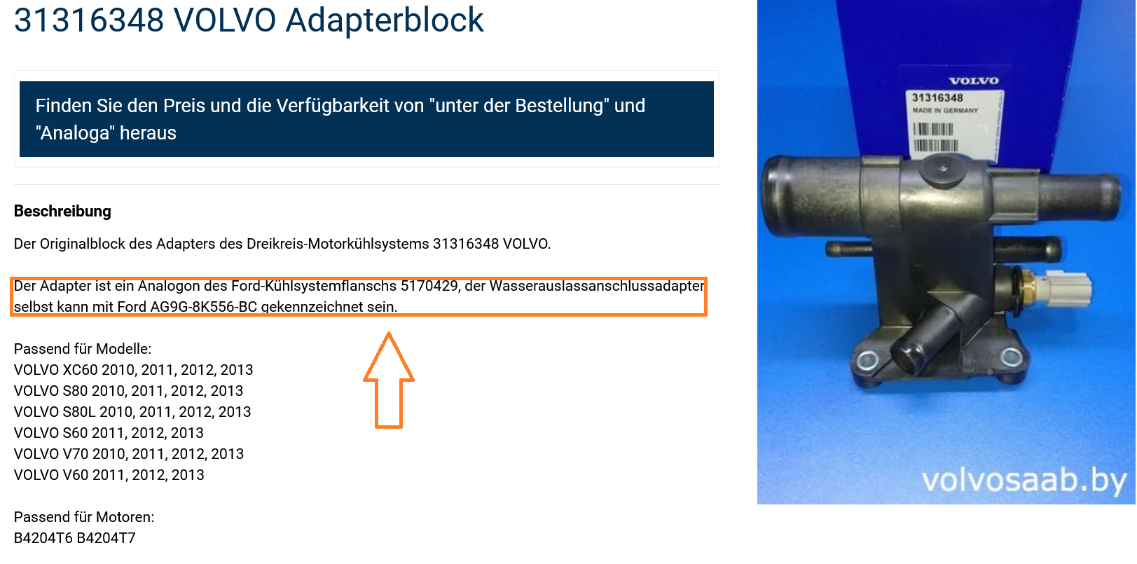 • Wenn du die Original Ford-Teilenummer meinst - der kürzere also der zw. Behälter und Kühler ist die 1 587 528, der längere also der zw. dem Gehäuse seitlich am Zyl.-Kopf und dem Behälter hat die 1 694 727 (passend bis Baudatum 5/2011)