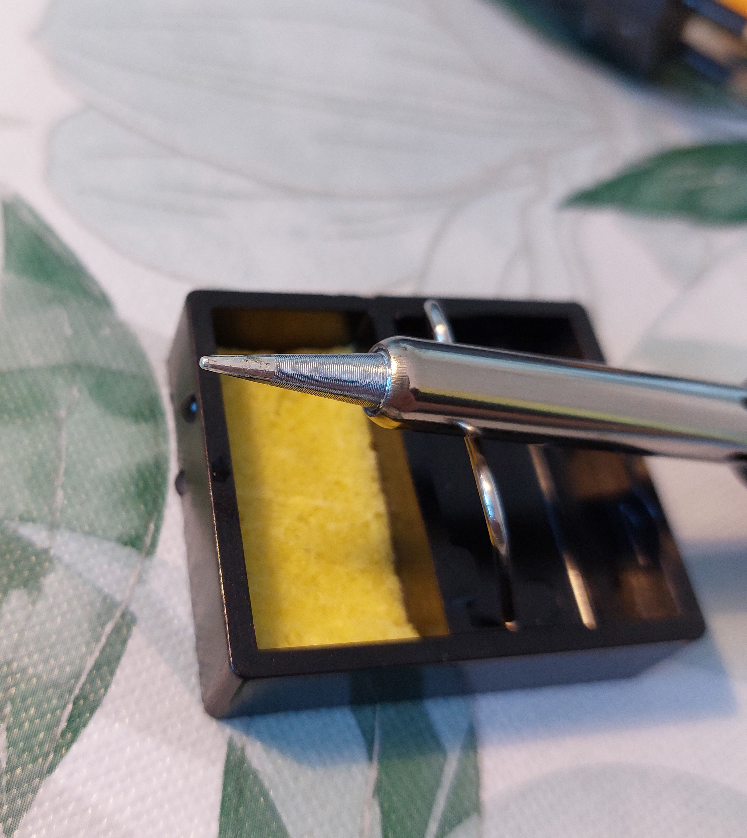 The hot air soldering station remained in my homeland, so I had to be content with a cheap soldering iron with a thin tip found on Amazon.