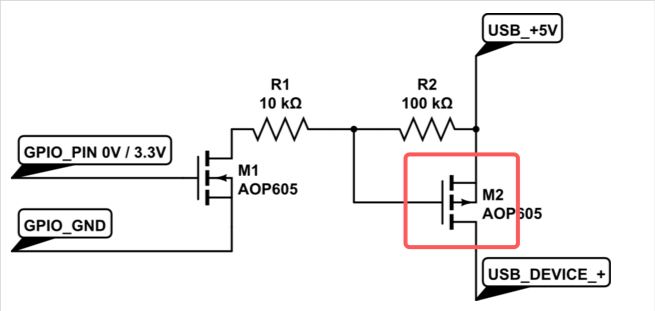 According to the scheme, the USB connector is powered by a mosfet, in which 5V is constantly present at the "source".
