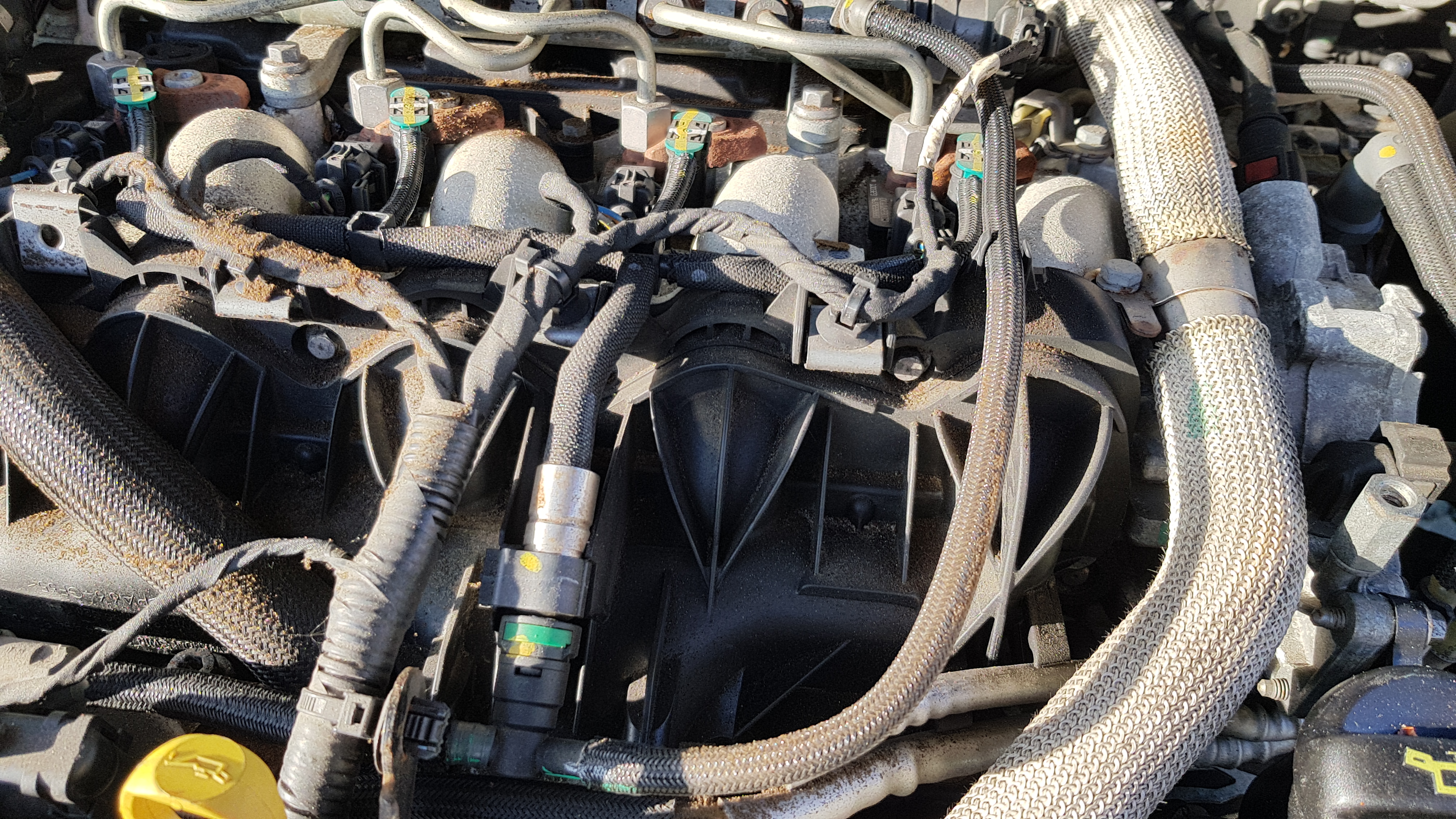 Zum Ölverlust: Habe schon länger vorne am Motor den Ölfilm, dachte aber bisher es wäre nur Öldunst bzw. vom Ölwechsel, das da jemand unsauber gearbeit hat. Allerdings hab ich heute im Rahmen von Scheinwerferdemontage mich auch mal hierrum gekümmert. Auf dem Foto sieht man das Problem deutlich, an den markierten Stellen war deutlich Öl zu finden. Auch an der Kante von dem grauen Gehäuse auf der linken Seite (Was ist das?) Habe jetzt soweit ich erstmal ran kam alles abgewischt, aber die Frage stellt sich wo kommt es her bzw. habe ich ein größeres Problem. Sprich ist die Ölverdünnung dafür verantwortlich und drückt es dann irgendwo heraus weil zuviel Öl letztendlich im Motor ist.