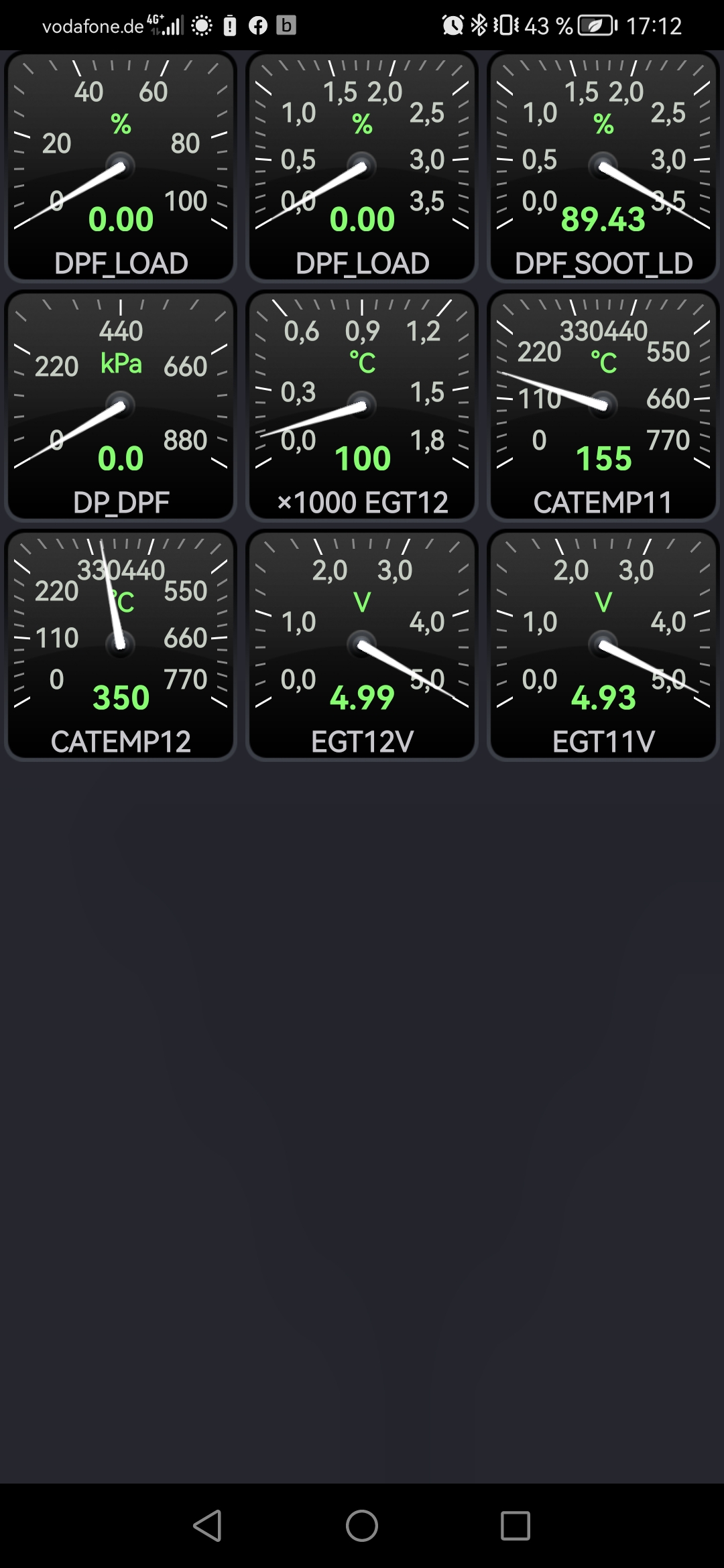 So heute Abend ging beim Motorstart die schöne gelbe Motorleuchte an. Habe dann ausgelesen P2002 okay soweit gut.Habe dann Mal alle Daten von DPF ausgelesen während der Fahrt und der Sensor EGT12 blieb stehen denke der ist defekt und bei der Voltzahl steht der bei 4.99 Volt! Jetzt bin ich etwas irritiert.EGT13 funktioniert Und die DPF Werte von geschlossen Kreis verliert er als und stehen 0