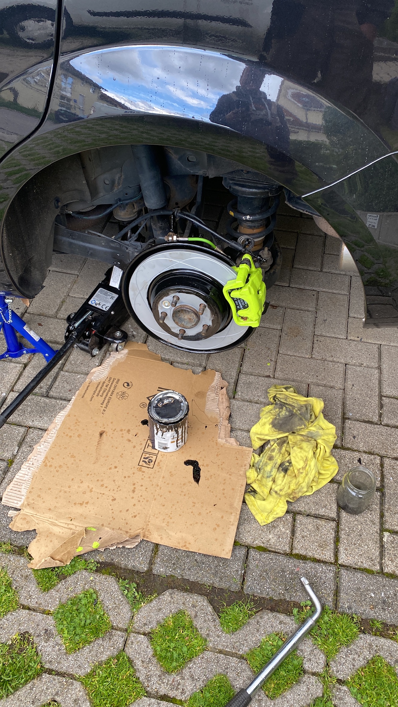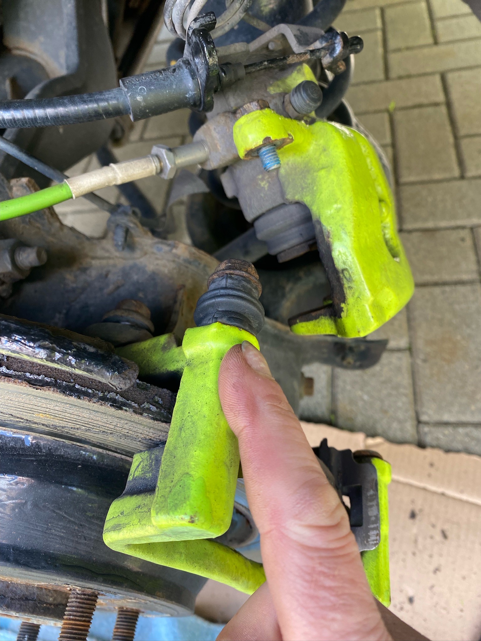 Der eine Gleitbolzen war festgerostet. Also alles schön mit Schmirgelpapier und viiiiiel Fett. -