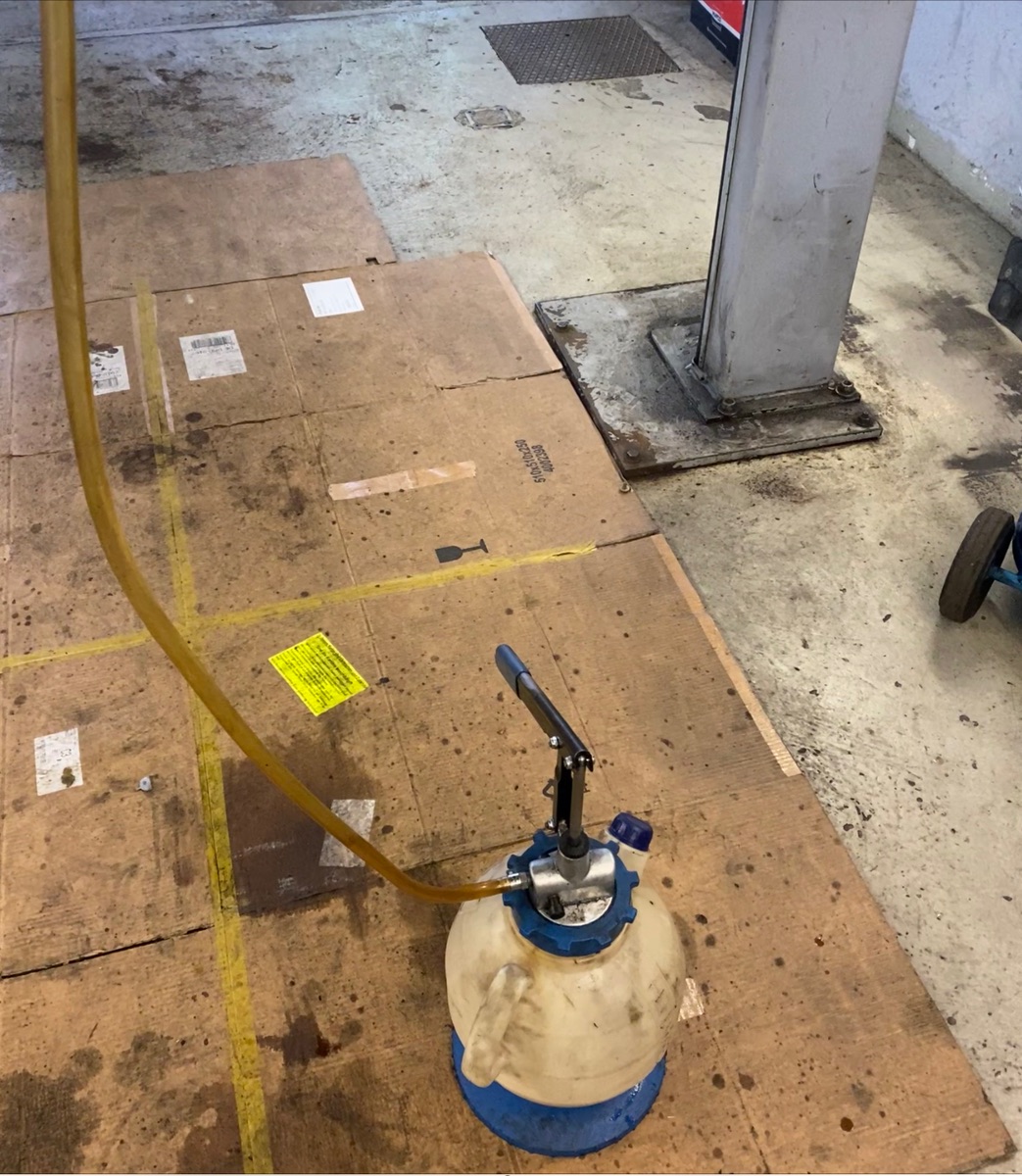 - Öl mit Pumpe einfüllen an der oberen Schraube bis es wieder herausläuft ( 2 Liter waren ein bisschen zu viel