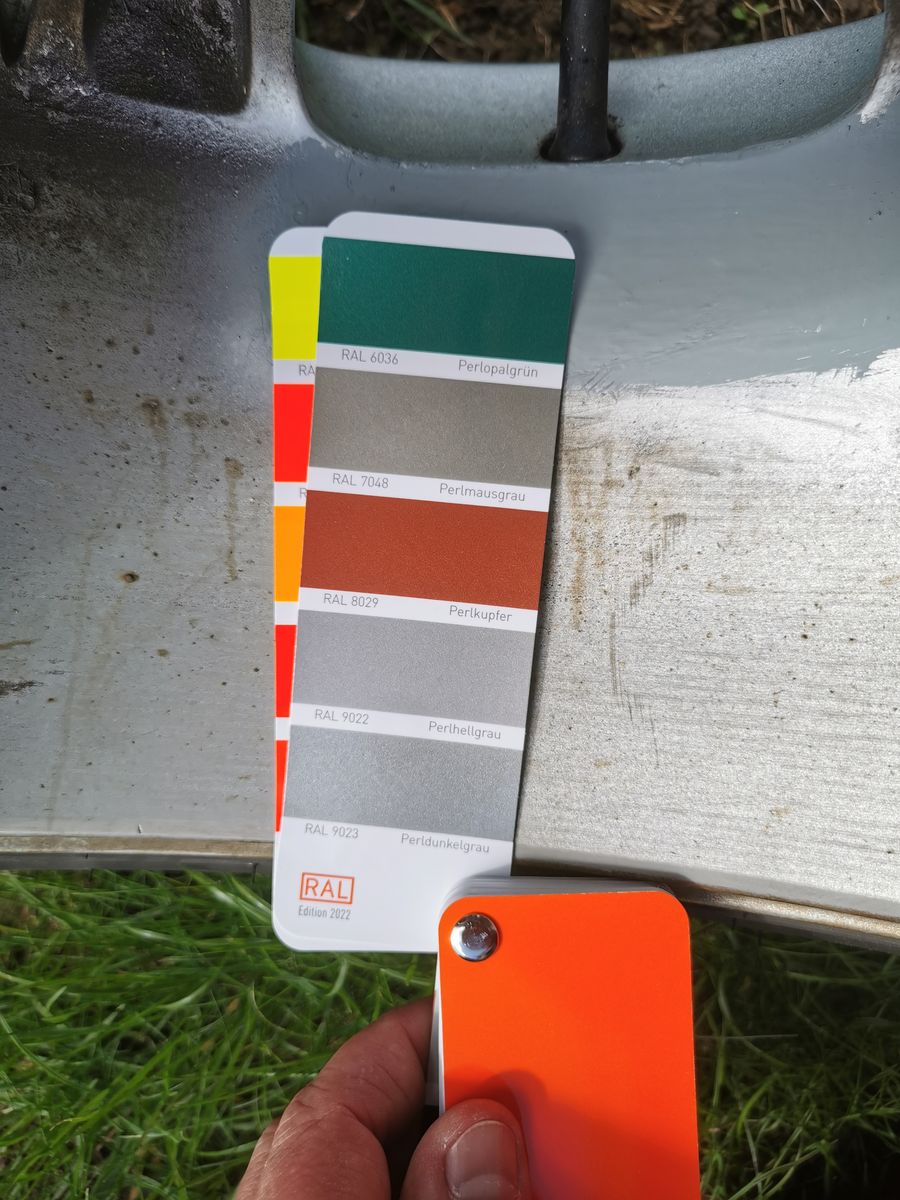 Ich schätze mal, es geht um die "Pusteln" rund um das Ventil-Loch. Irgendein "Anthrazit" und dann auch noch matt.