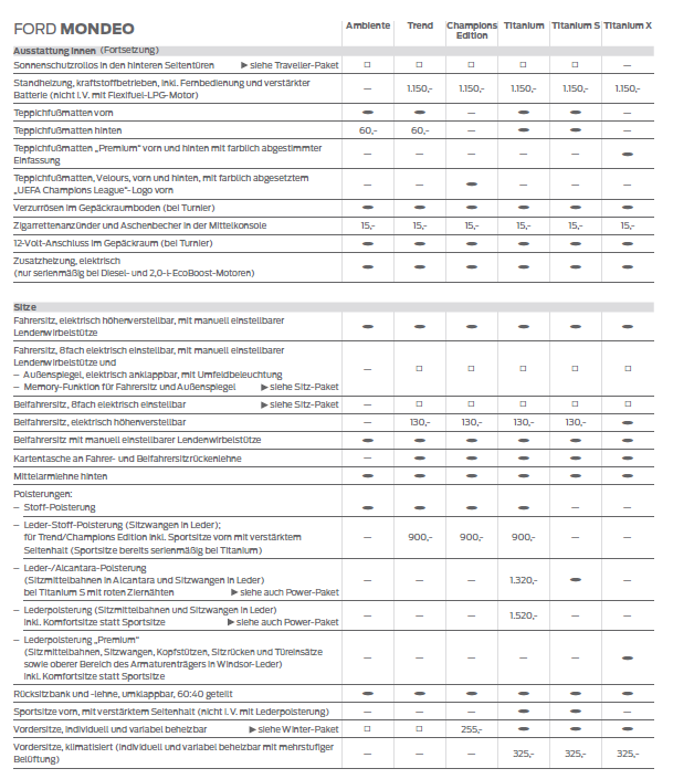 In meinem mondeo schrägheck von 2008 sind normale Stoffsitze mit Sitzheizung und elektrischer Höhenverstellung verbaut.