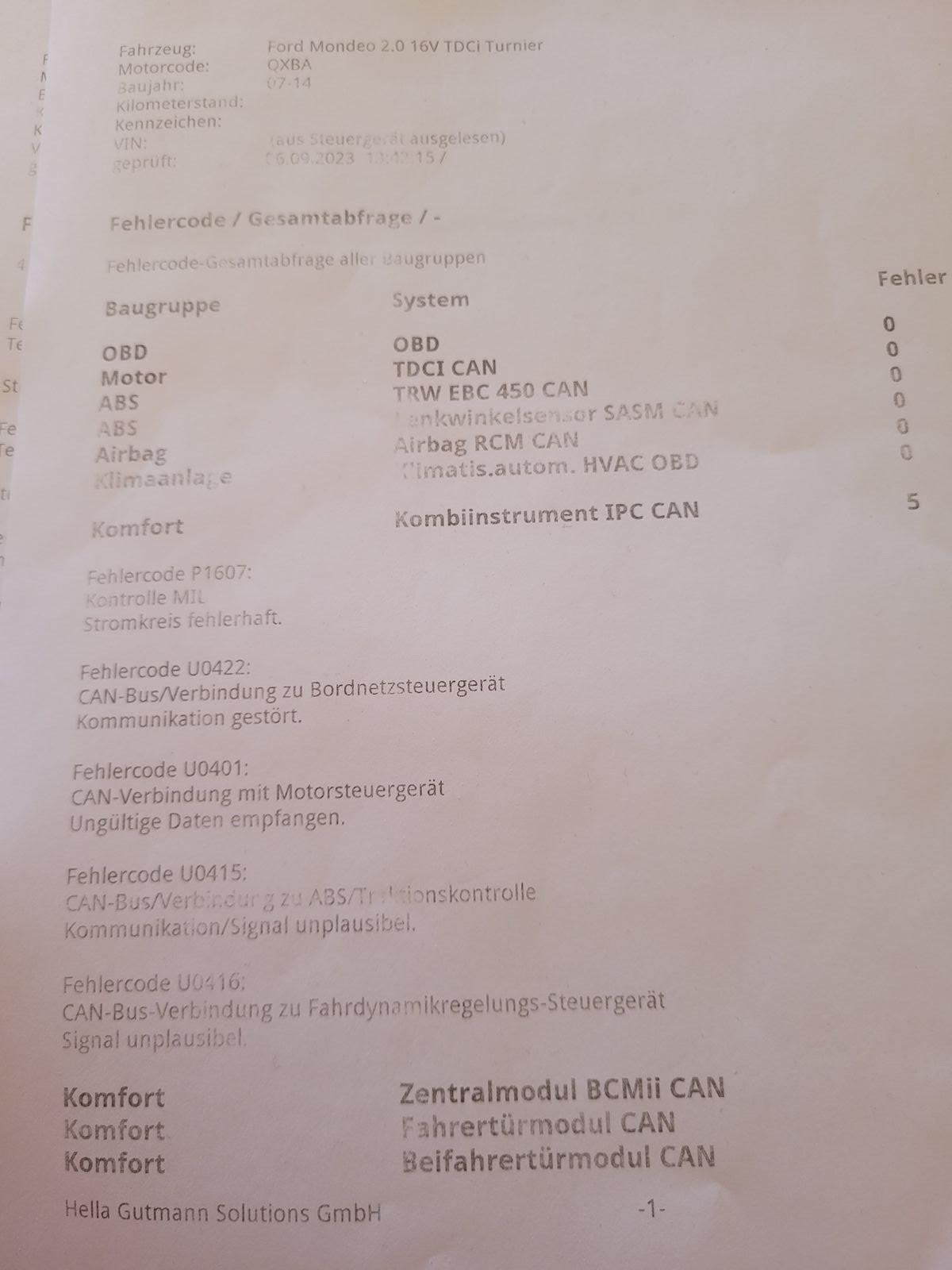 Mir scheint, als seien die einzelnen Fehler die Summe eines defekten Kombiinstruments, oder sehe ich das falsch?