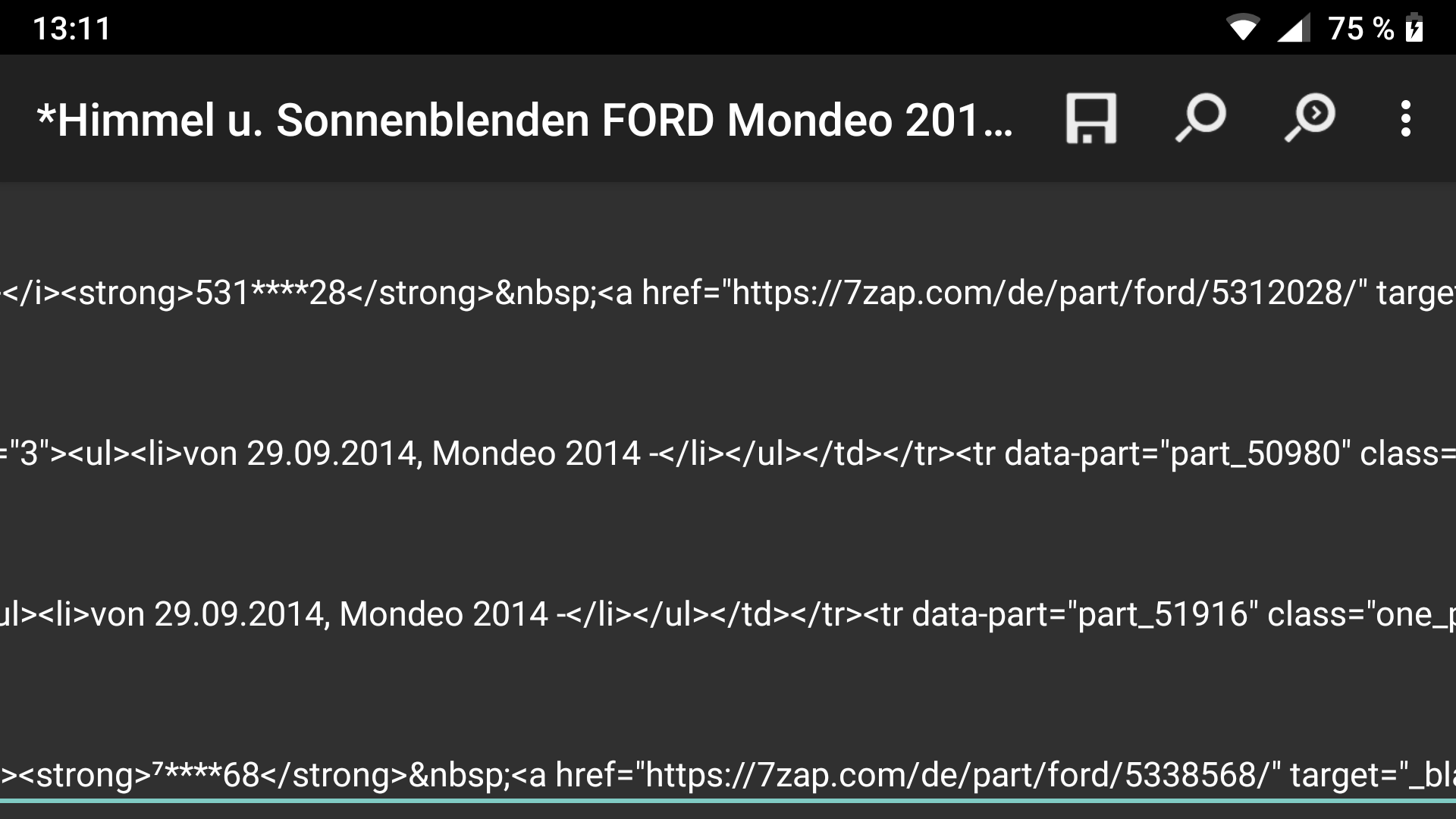 Und was passiert beim Klick auf die Lupe neben der verstümmelten Teilenummer?