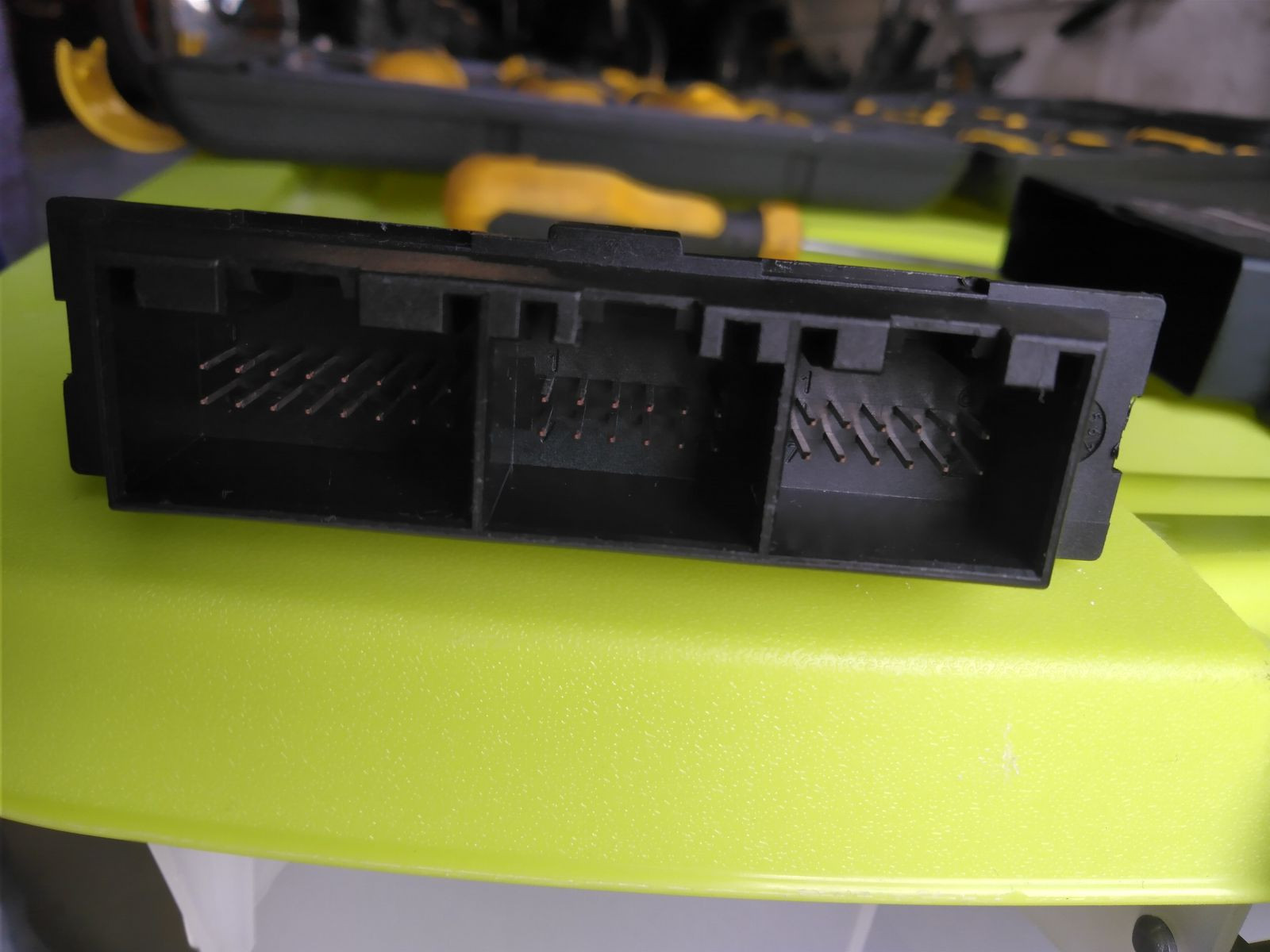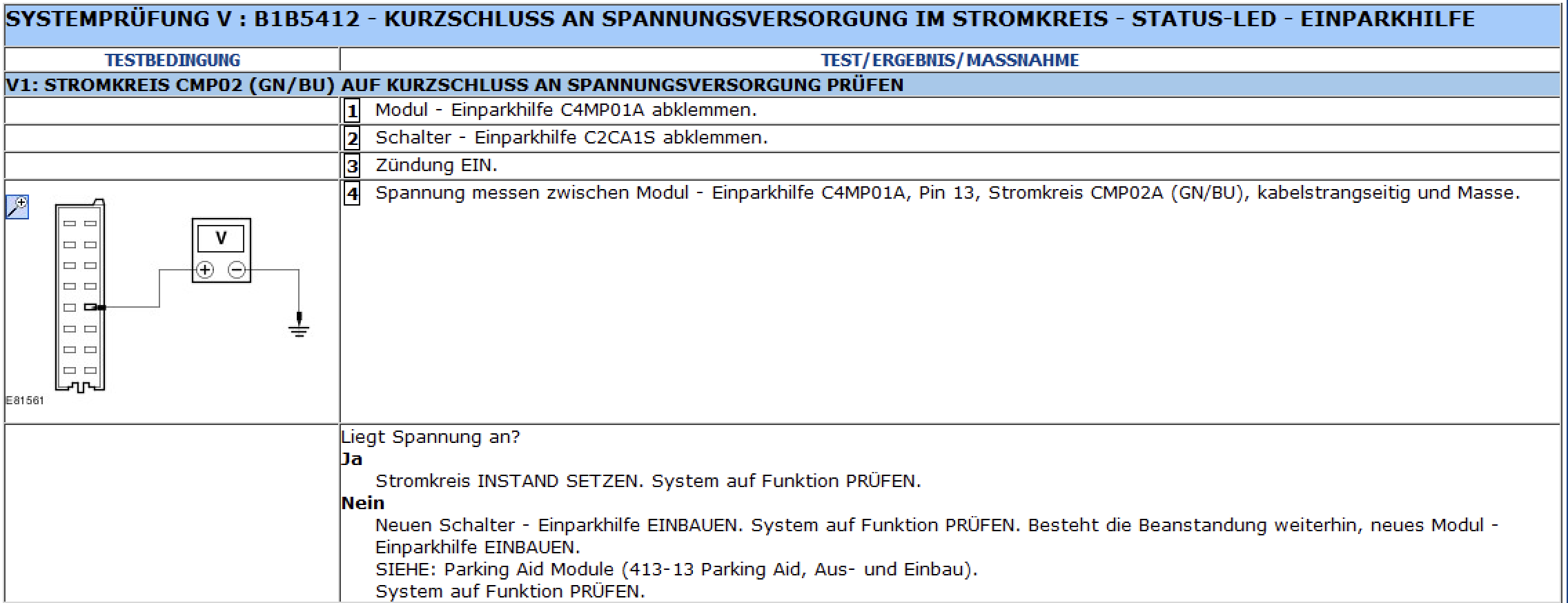 Pin 6 (Grün/Braune Leitung)Pin 3 (Grün/Blaue Leitung) gegen Masse, am besten am Zigarettenanzünder im Außenring die Spannung prüfst. Liegen hier +12V an, stimmt der Fehlercode (wovon eh auszugehen ist, denn die Selbstdiagnosen der Module sind wirklich ausgereift). Falls Du mal Steckerbelegungen brauchst, bitteschön: https://mk4-wiki.denkdose.de/grundlagen/par…d_pinbelegungenSollten die 12V anliegen bedeutet das weiter das irgendwo im Kabelweg von hinten nach vorn eine ungewollte Verbindung mit +12 stattfindet. Ursache kann ein gequetscher Kabelstrang sein. Ich würde aber als nächstes das PDC-Modul freilegen, den Stecker C1 (https://mk4-wiki.denkdose.de/grundlagen/par…ugkommunikation) vom Modul abziehen und die Messung nochmal wiederholen. Sollten dann immernoch 12V anliegen, dann hast Du ein ernsthaftes Problem im Kabelbaum!
