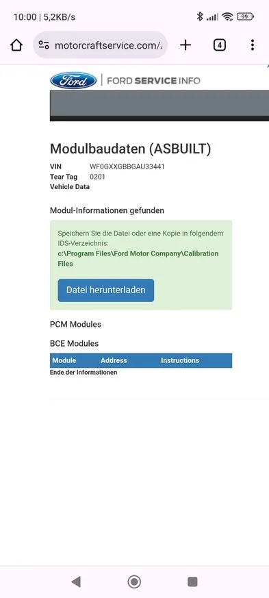 Ich versuche eine as build Datei von meinem Fahrzeug zu bekommen. Über die Seite von Motocraftservice habe ich es versucht und das klappt leider nicht.