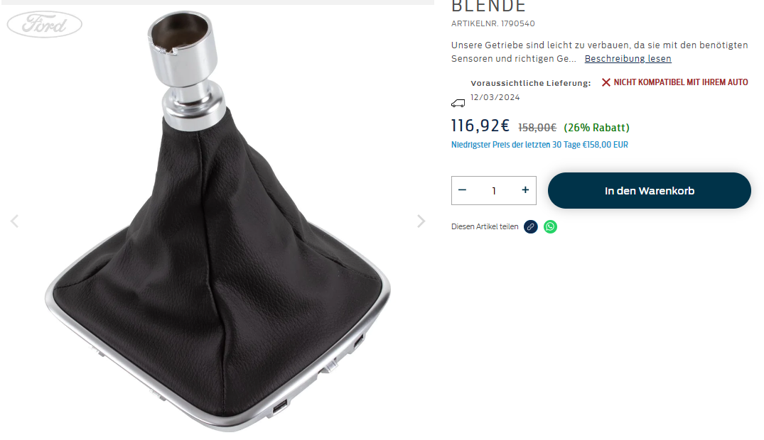 Den Schaltsack gibt es laut Ford nur komplett: