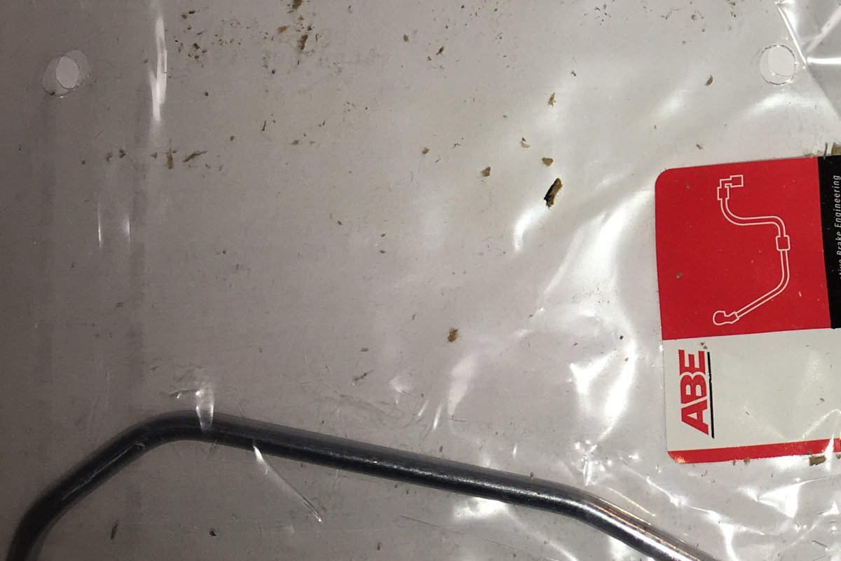 Wer schon mal Pakete mit diesem staubigen Füllmaterial bekommen hat, weiß, was für eine Sauerei das ist. Ich habe die Umverpackungen der Bremsleitungen bereits abgewischt, aber in der Folie sind mehrere kleine Löcher ausgestanzt, durch die Staub und Krümel des Füllmaterials auch in das Innere der Umverpackung gelangt sind.