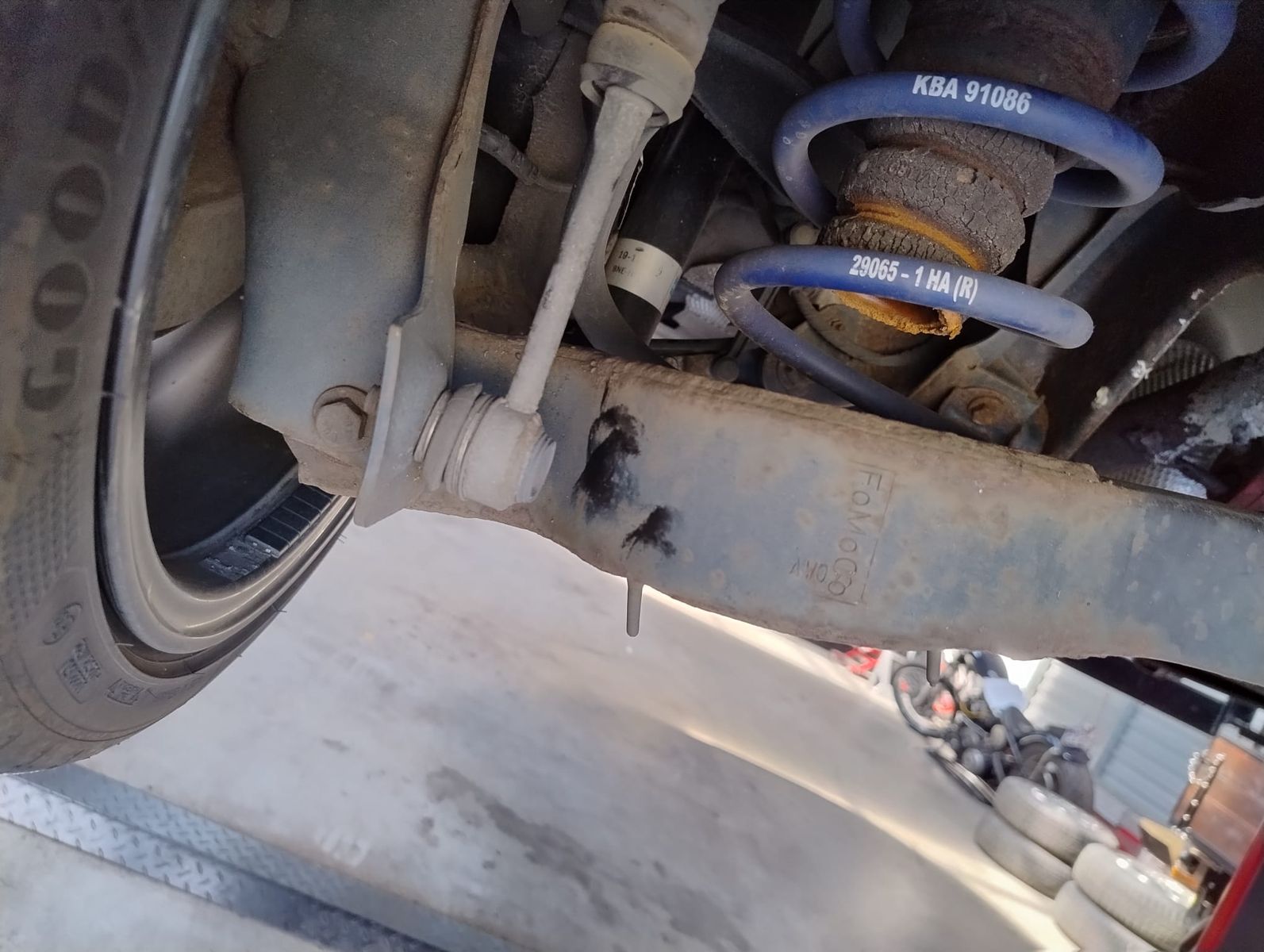 Es sieht jedoch so aus, als würde die Koppelstange an den Querlenker schlagen.... Koppelstange hat jedoch ausreichend Platz, auch wenn die Wanne auf dem Boden steht...
