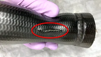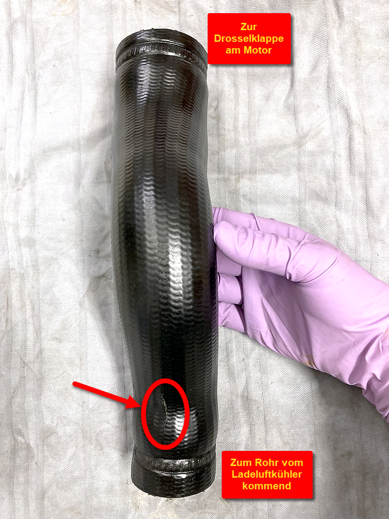 Tja, es kommt immer zum ungünstigsten Zeitpunkt... dieser Tage war ich in NRW im Raum Krefeld/Essen unterwegs und schon auf der Hinfahrt hatte ich das komische Gefühl das der Wagen hinten raus nicht mehr so beschleunigt wie ich das gewohnt war, aber das war sehr unterschwellig. Dann, kurz für Essen WUM "Motorstörung" mit MIL und keine Leistung mehr (vermutlich Notlaufprogramm). Ein Blick unter die Motorhaube und verdächte Ablagerungen am Schlauch haben mich ein wenig beruhigt denn das kannte ich ja schon. Dasselbe hatte ich bereits zweimal(!) im laufe der 15 Jahre Betriebszeit meines Mondeo. In beiden Fällen stand das Fahrzeug aber zuhause und ich konnte mir "in Ruhe" ein Ersatzteil bestellen, beide Male Original Ford und somit auch nur das ganze Rohr (1596810) zum stolzen Preis von 290,- €: