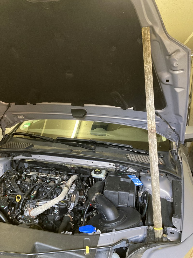 Ihr mögt drüber lachen aber bei Reparaturen im Motorraum habe ich aus der Not heraus mal eine 1m Holzlatte die ich rumliegen hatte: