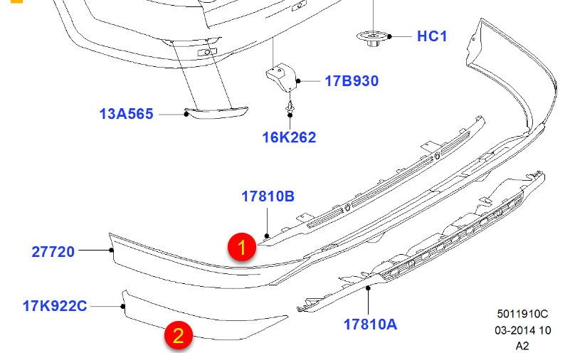 In Variante (1) bleibt die untere Spoilerlippe der Heckschürze erhallten und es wird nur die mittlere Blende gegen eine mit zwei "Wölbungen" ausgetauscht: