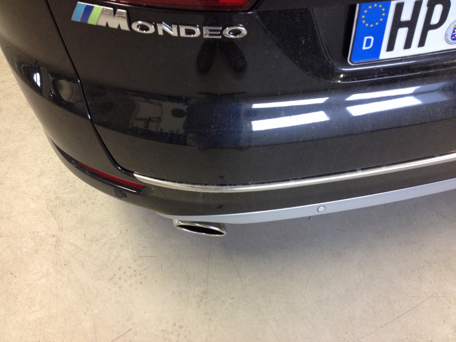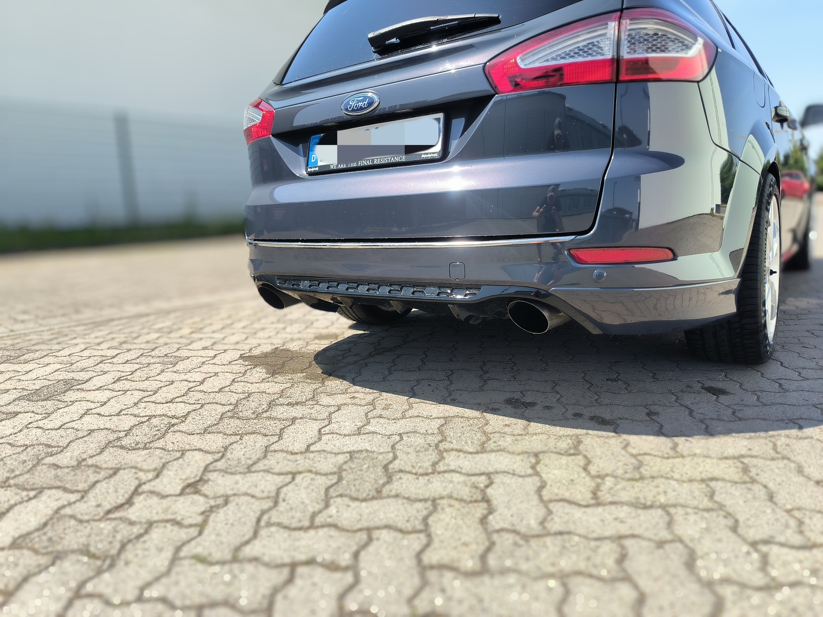 Die Optik in Variante (1) ist Geschmackssache, da man hier einfach dem Mondeo zu sehr unter den Rock schauen kann. Ich finds hässlich, wenn schon Doppelrohr, dann auch mit Diffusor.