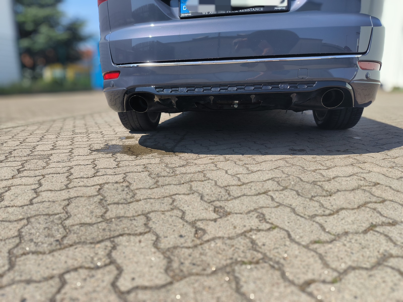 Noch ein Hinweis beim Teilekauf: Die Duplexanlage vom vFL sieht zwar auf den ersten Blick optisch identisch mit der vom FL aus, sie passt auch grundsätzlich rein, aber die Blenden sind einiges kürzer! Ich hatte das anfangs nicht bedacht als ich mal meine erneuern wollte. Auf dem Bild kommt es nicht so krass rüber aber die Endrohre verschwinden dann fast vollständig unterm Diffusor und man sieht sie kaum noch: