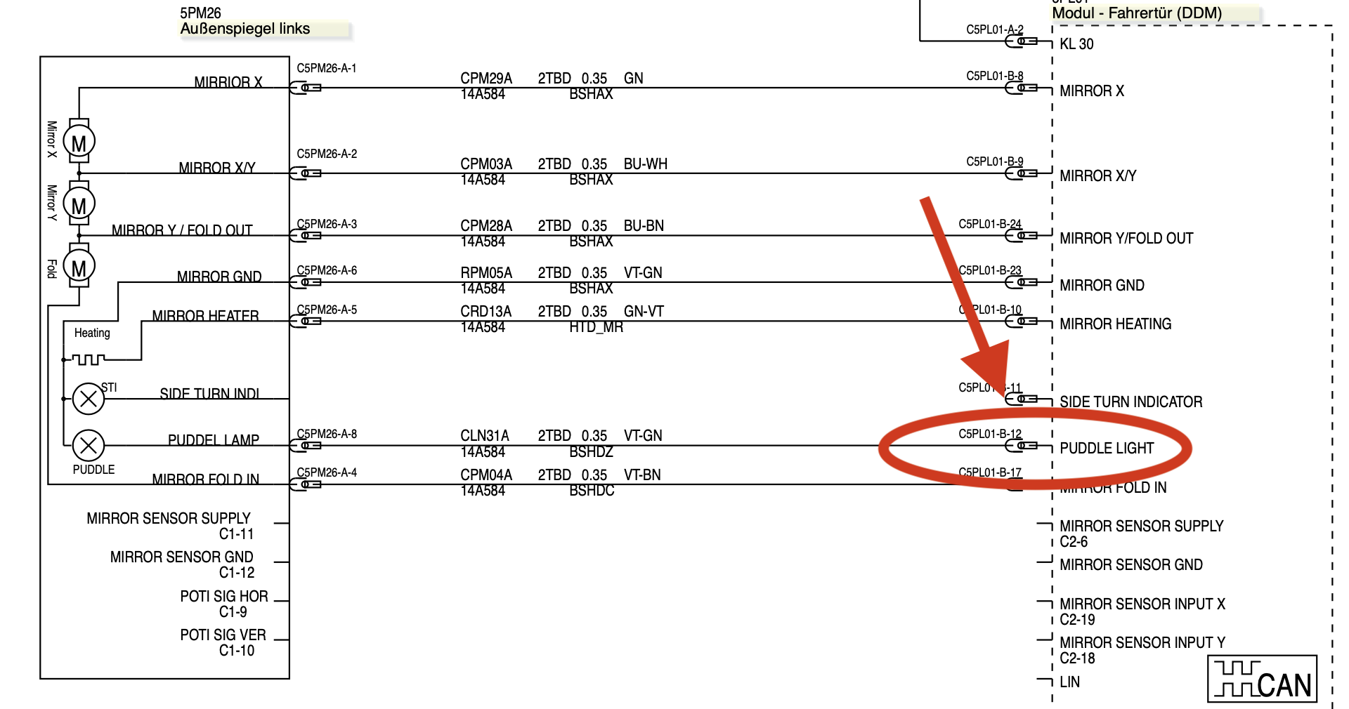 Ich bin mit dem Kabel durch die Türstecker gegangen an die Fußraumbeleuchtung. Damals beim Vorgänger.